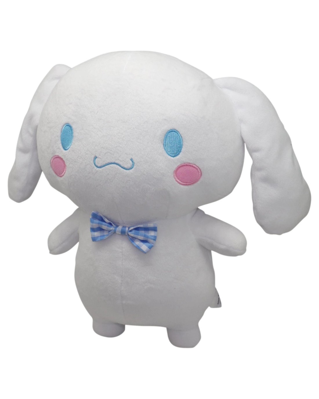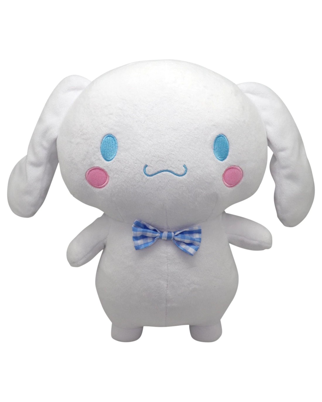 Meet your new best friend! It's Cinnamoroll, the little white dog from up in the clouds who works at Cafe Cinnamon. He's shy but pure-hearted, always willing to help his friends when they need it. Here he is in a soft, plush form for you to cuddle! He looks adorable in a sweet blue bowtie that brings out his sky-blue eyes, and super-soft white fur! Ages 3 +