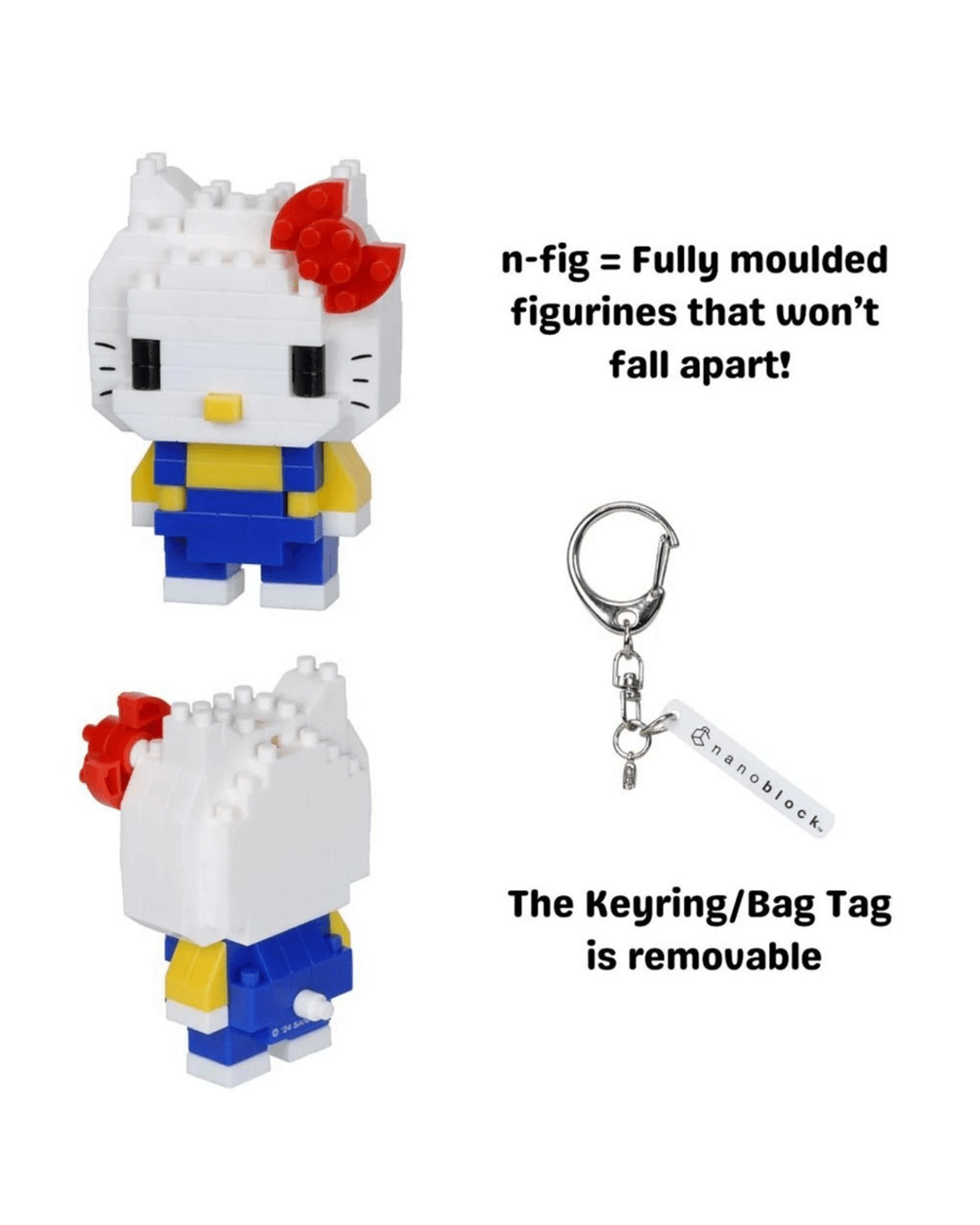 Zero assembly time needed with this N-FIG - Hello Kitty bag clip! This Hello Kitty is a fully moulded nanoblock-inspired figurine on a removable bag tag that won't fall apart.
