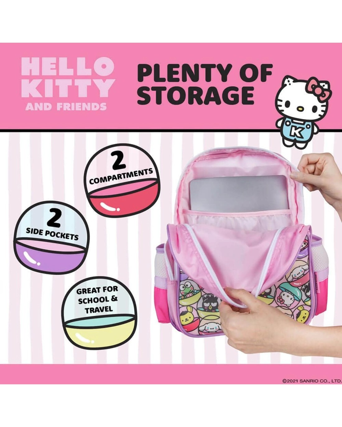 Carry your essentials in ultimate style with the Hello Kitty School Backpack! With a spacious design, multiple compartments, padded shoulder straps and a cute Hello Kitty & Friends print, this backpack is perfect for school, work, or everyday adventures.