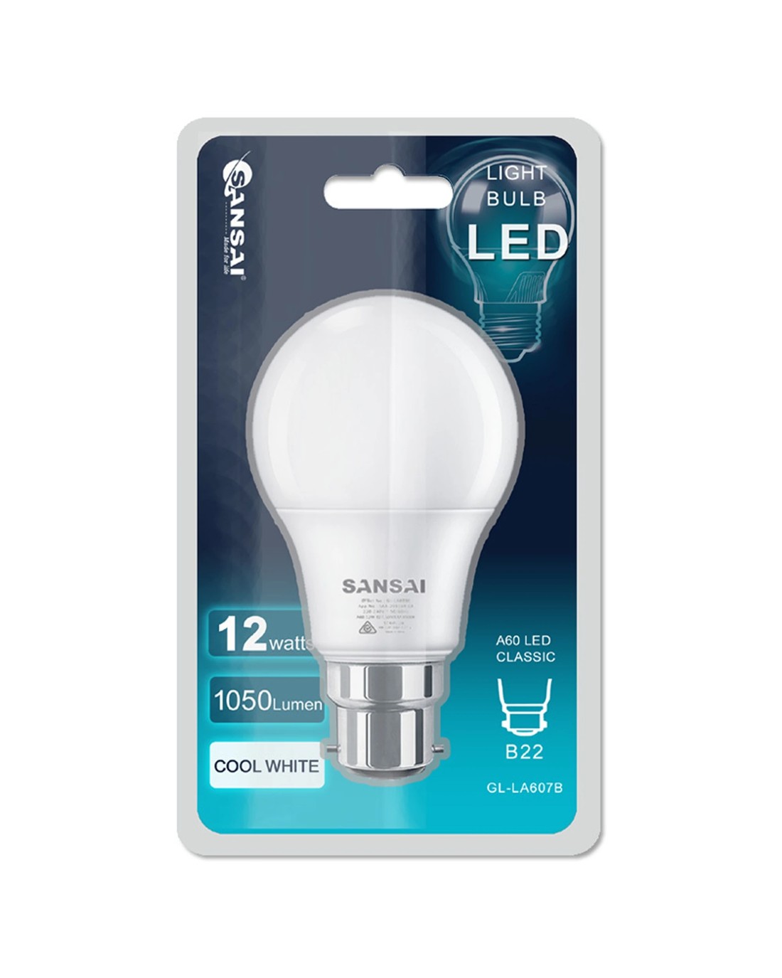 Sansai LED Light Bulb A60 12W B22 Cool White