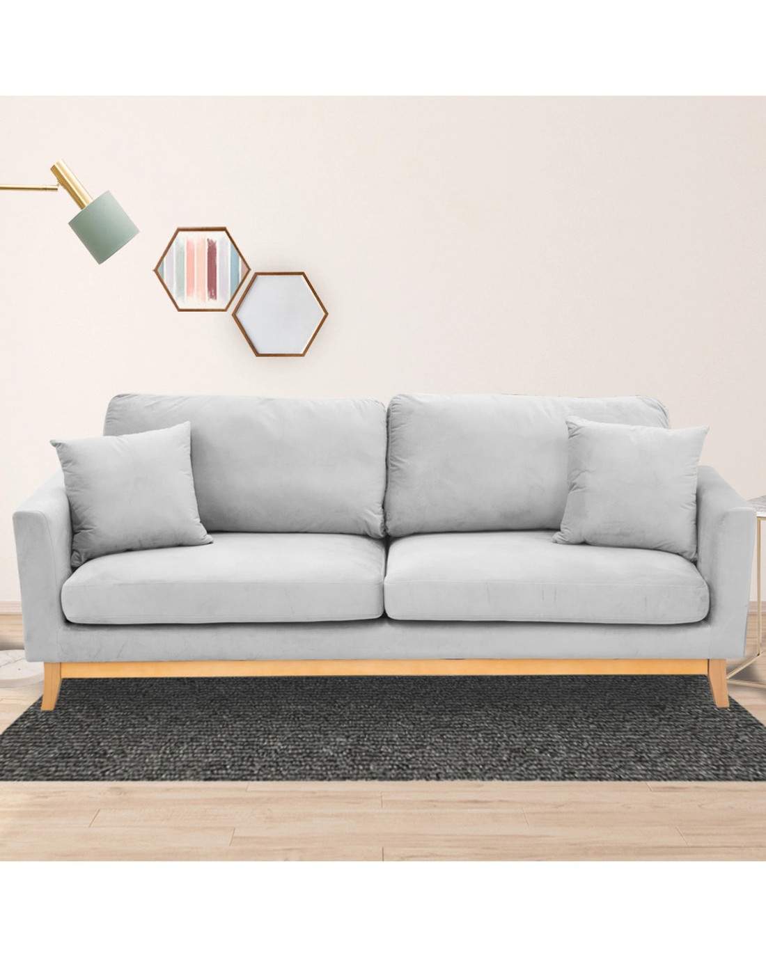 This 3-seater sofa constructed with faux velvet fabric is blessed with classic good looks and beautiful wooden legs and will make a strong style statement in any home.