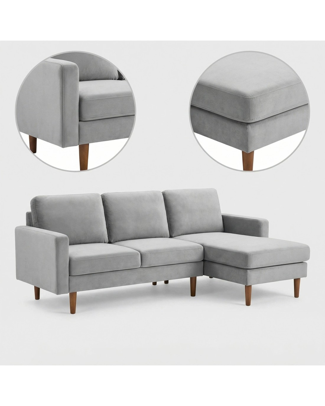 The collection should suit any living room decor with the sleek modern design. The set features thickly-padded faux velvet upholstery and a high-quality wooden frame.