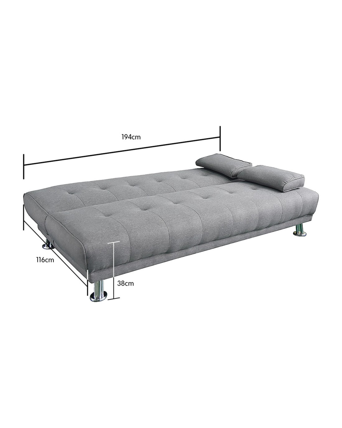 Measuring (w) 194cm x (d) 100cm x (h) 88cm, this sofa bed features wooden frame as well as stylish armrest type pillows and comfort seating to provide a sofa that's truly comfortable to sink back into and relax.