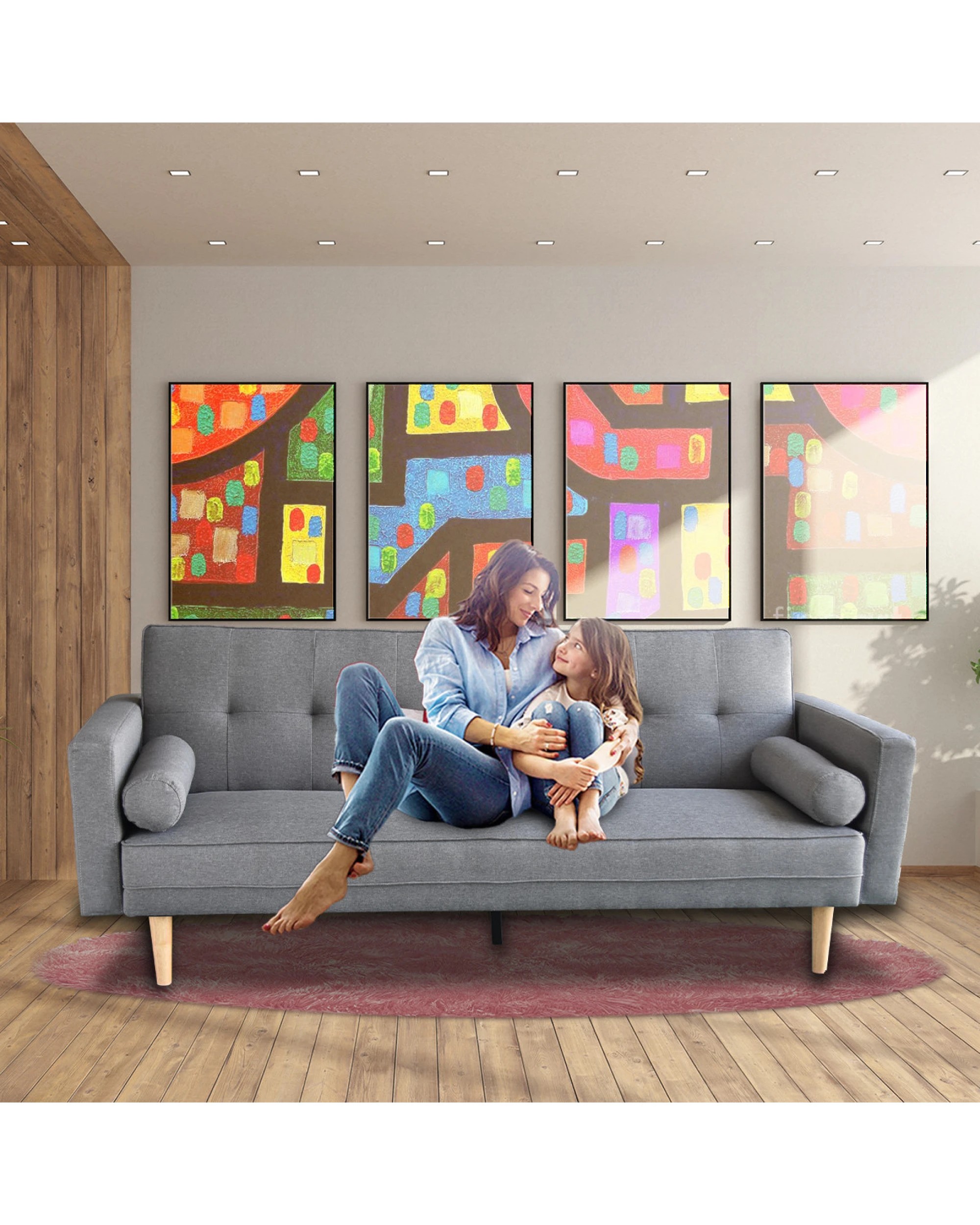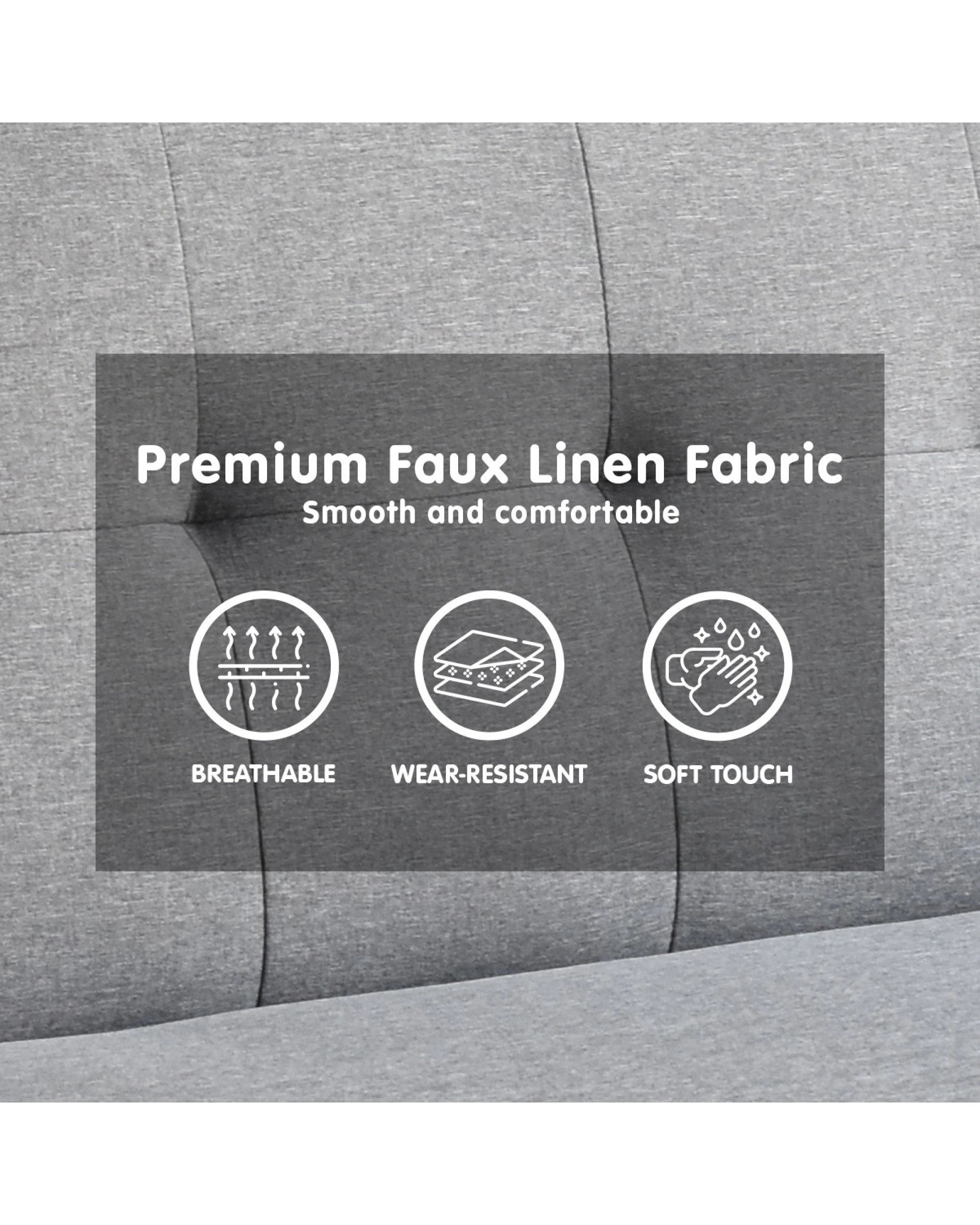 Sarantino 3 Seater Linen Sofa Bed Couch With Pillows - Light Grey