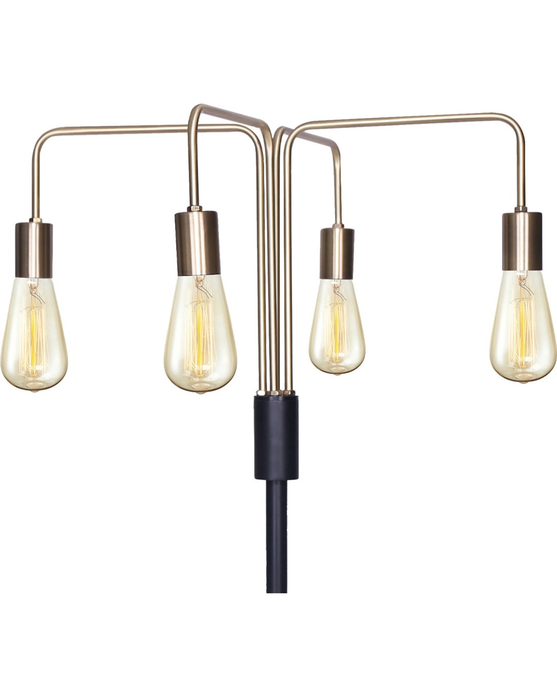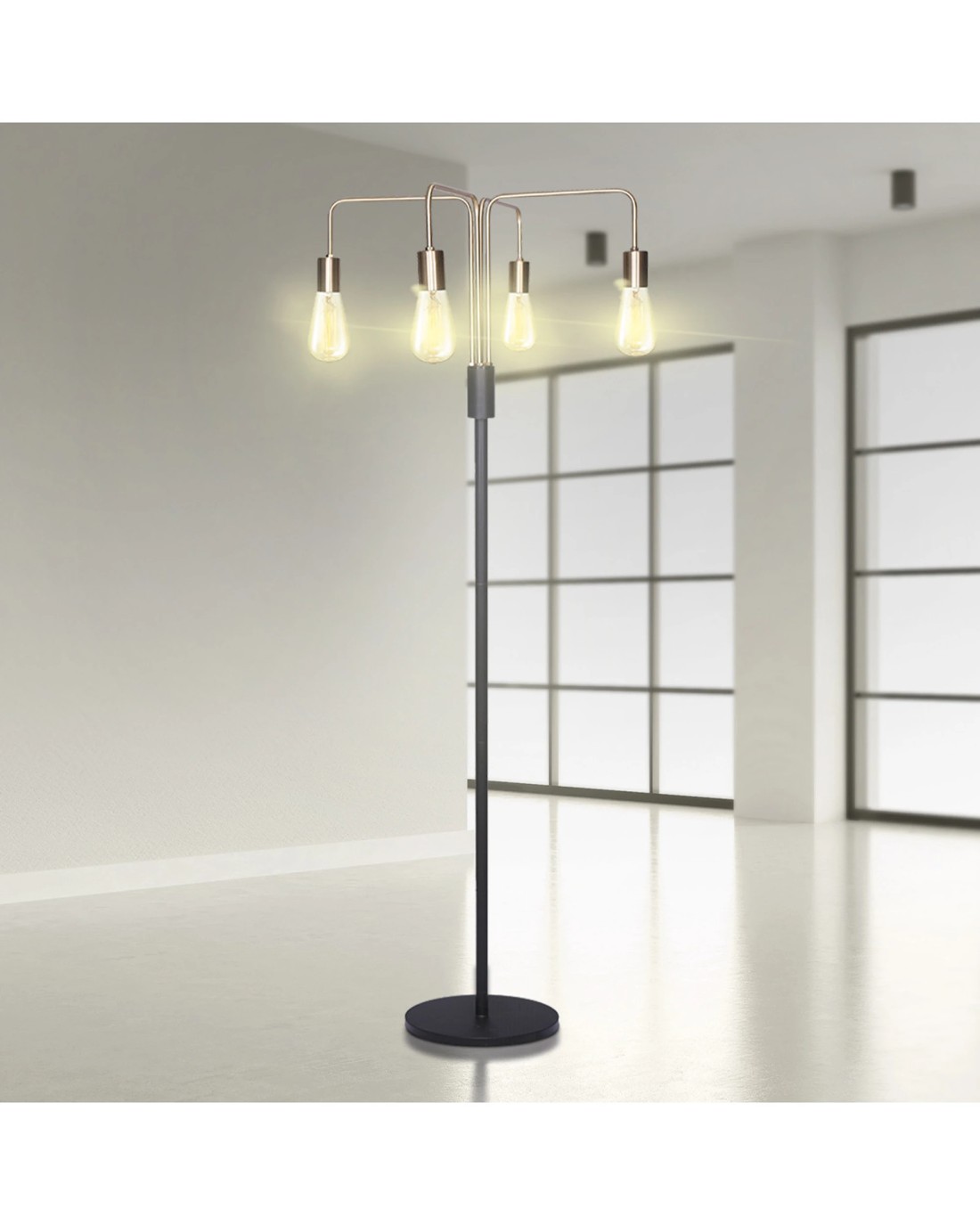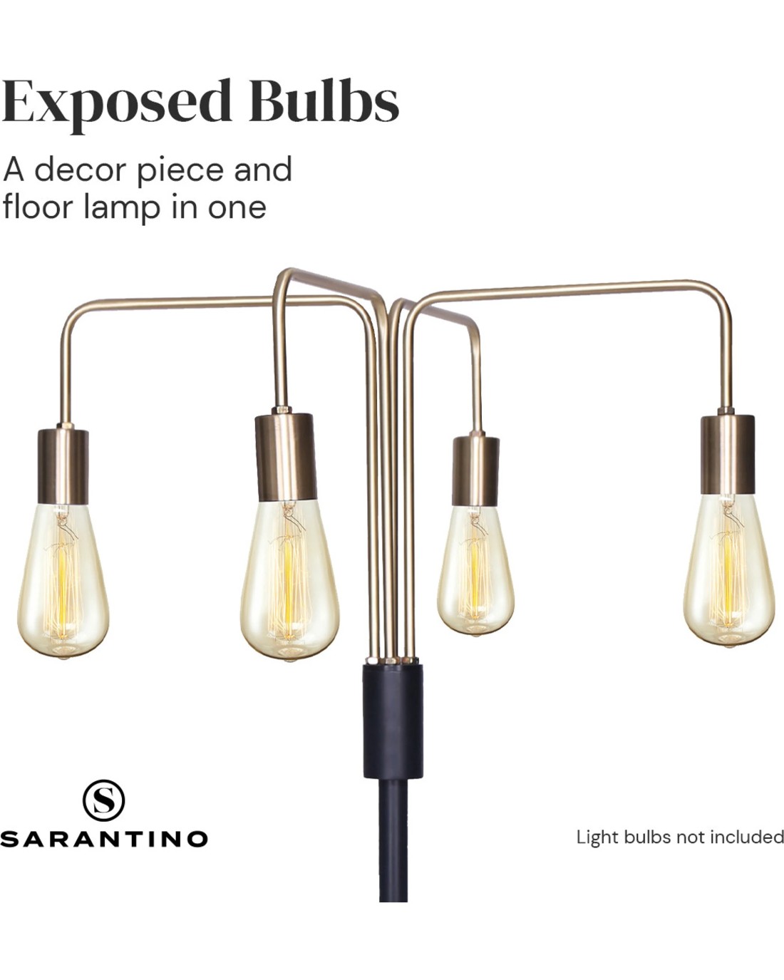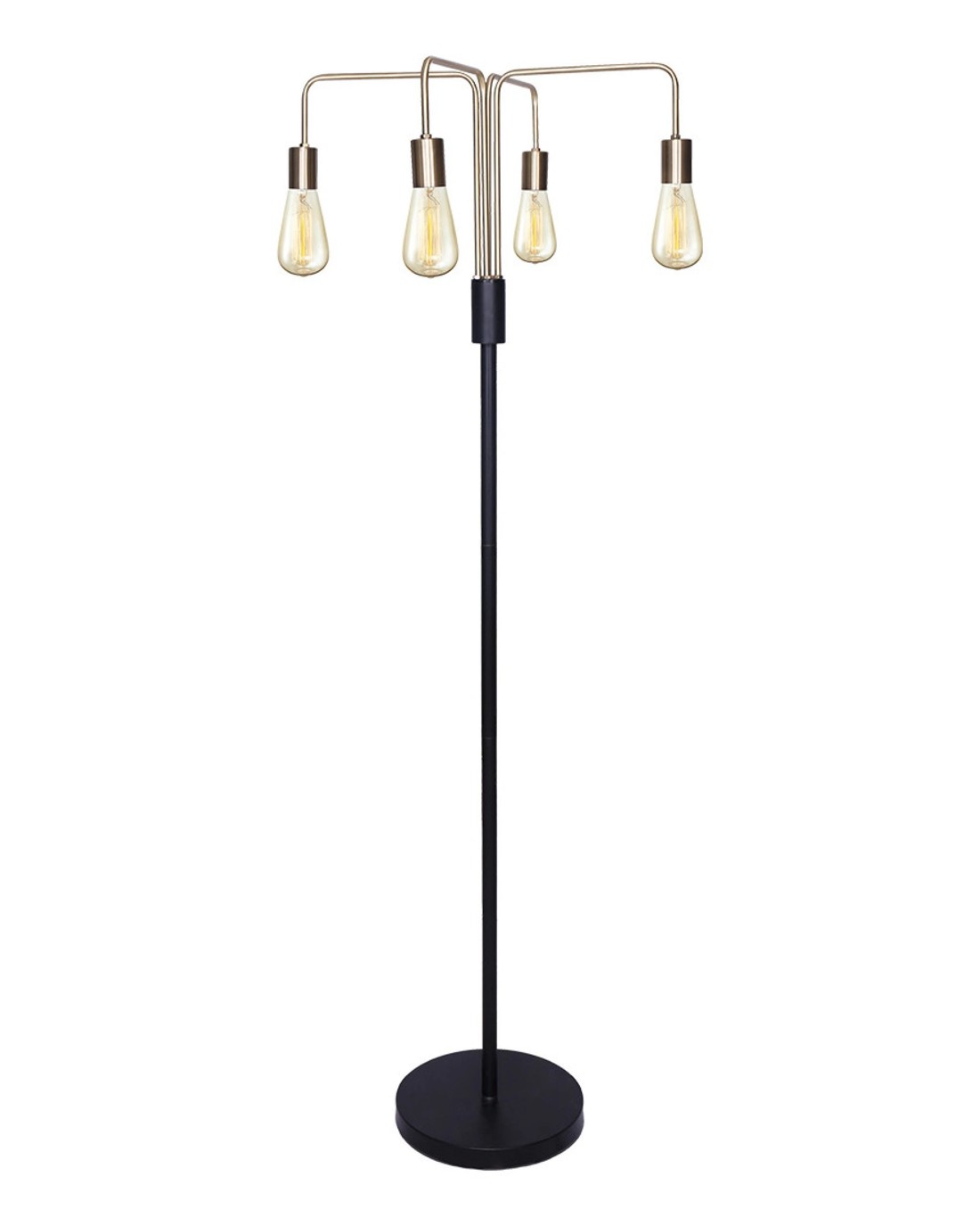 This industrial-style floor lamp is designed for a modern and elegant look. The metal lamp base and exposed bulbs (not included) lend a vintage touch. A rotary switch on the metal post makes it easy to turn the lamp on and off.