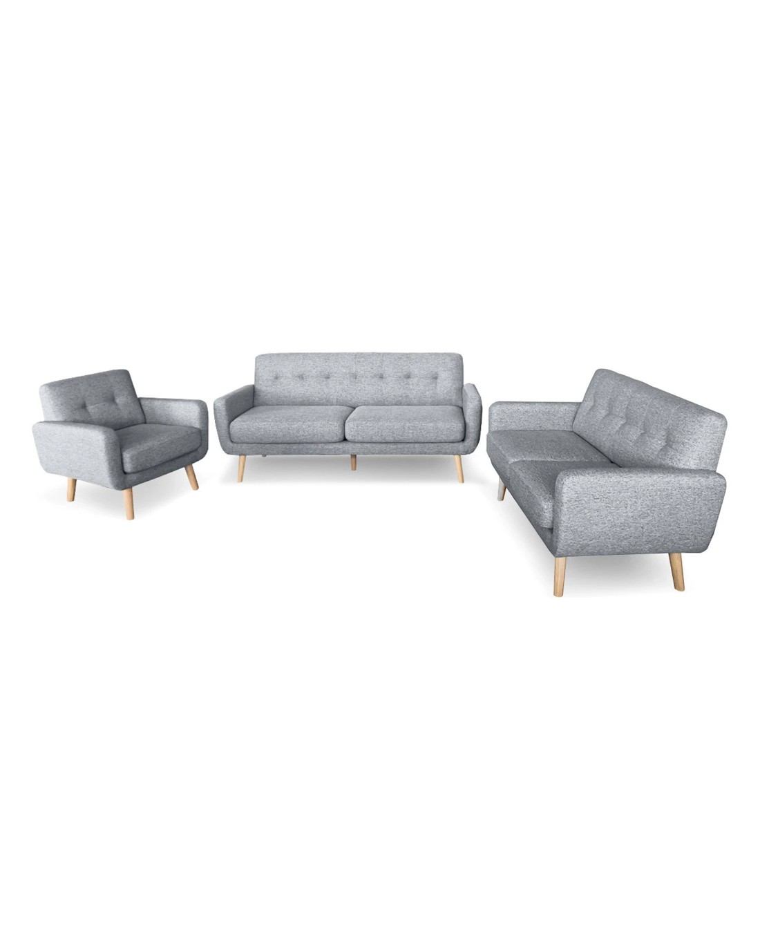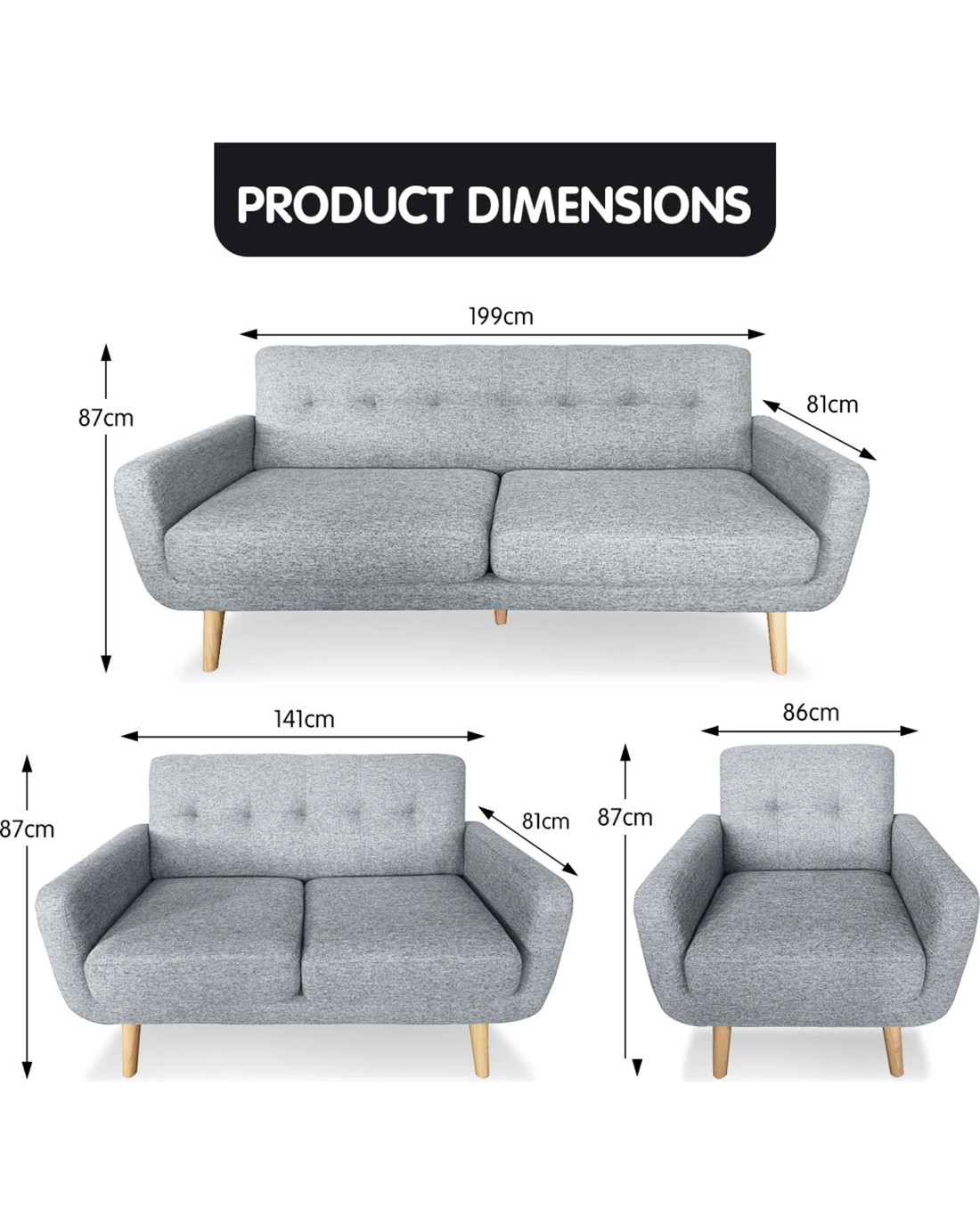 Sarantino 6-seater Linen Sofa Set Couch Futon - Light Grey