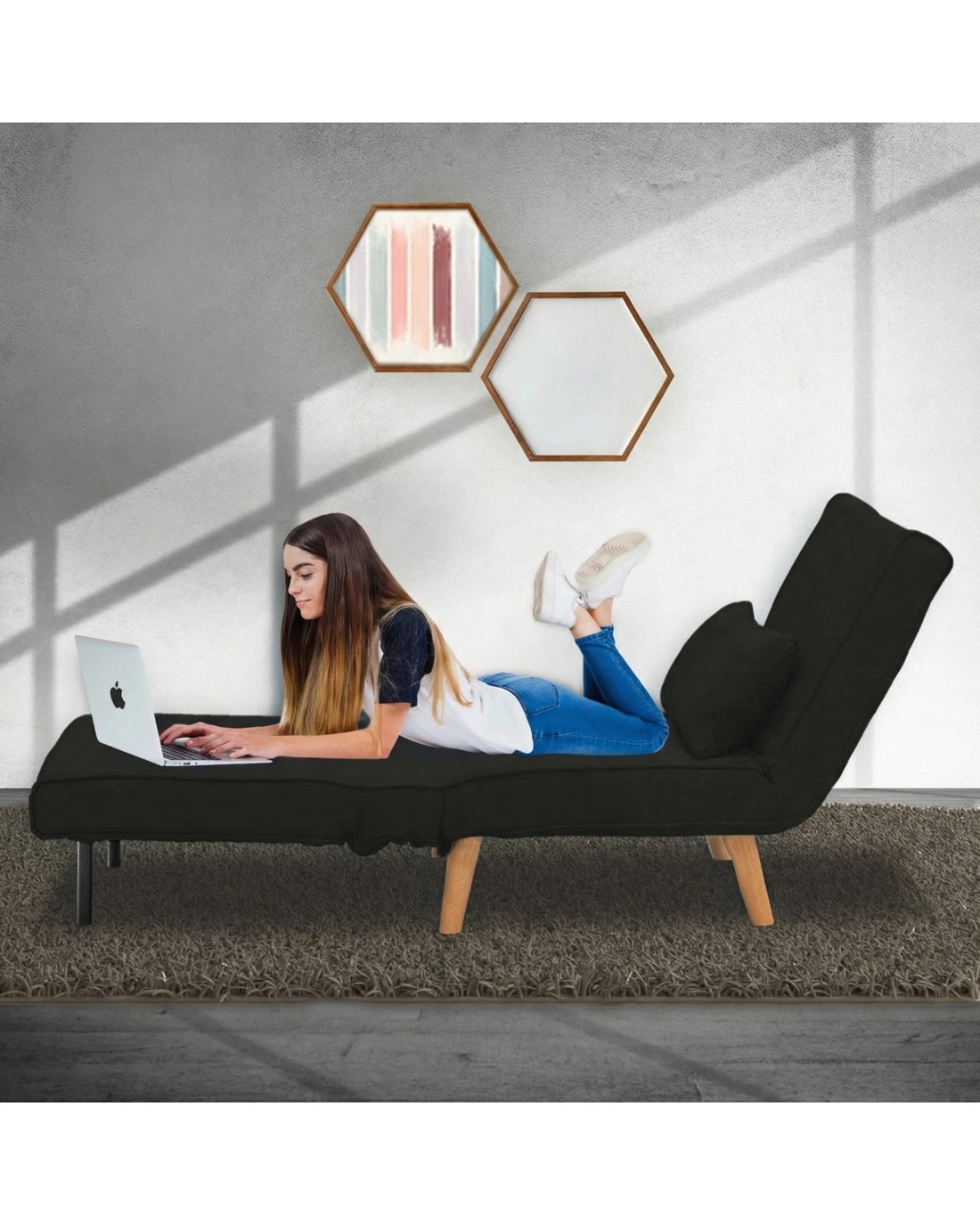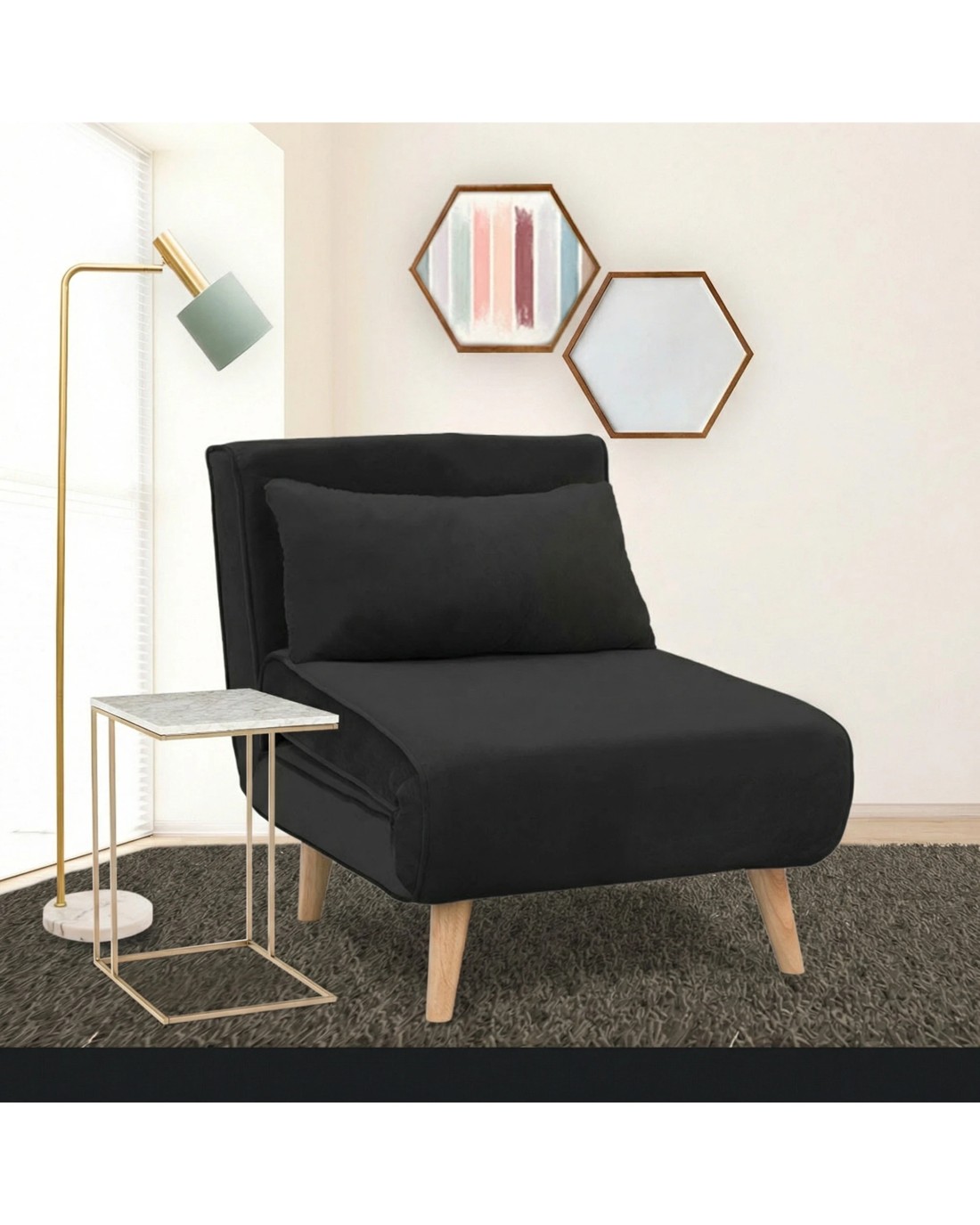 Sold by Klika GroupSarantino Adjustable Chair Single Sofa Bed Faux Velvet - Black