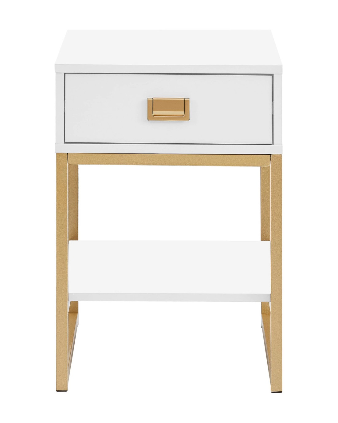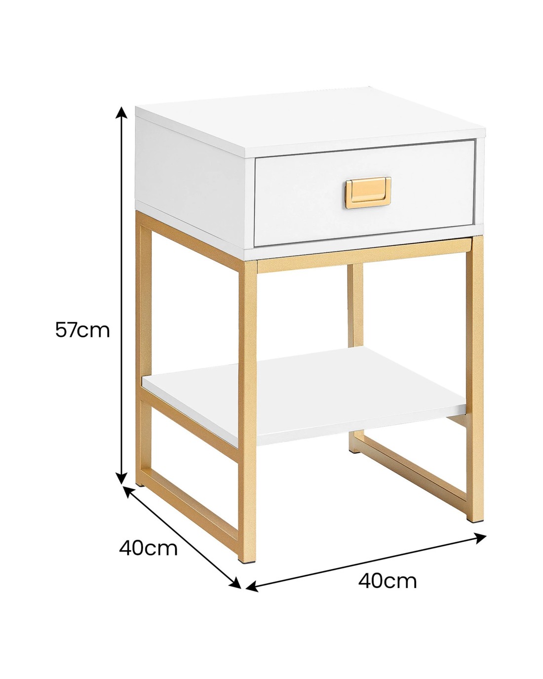 A chic statement piece for any contemporary home, the Sarantino Alessia Bedside Table is a breath of modern luxury. Its gleaming gold handle is a testament to its elegant aesthetic while the gold metal frame introduces a touch of opulence, elegantly framing a spacious drawer. Furthermore, the open bottom shelf not only enhances the design but also provides a chic display space. An invitation to redefine your living space with its exquisite allure, the Allesia is a cut above the rest.