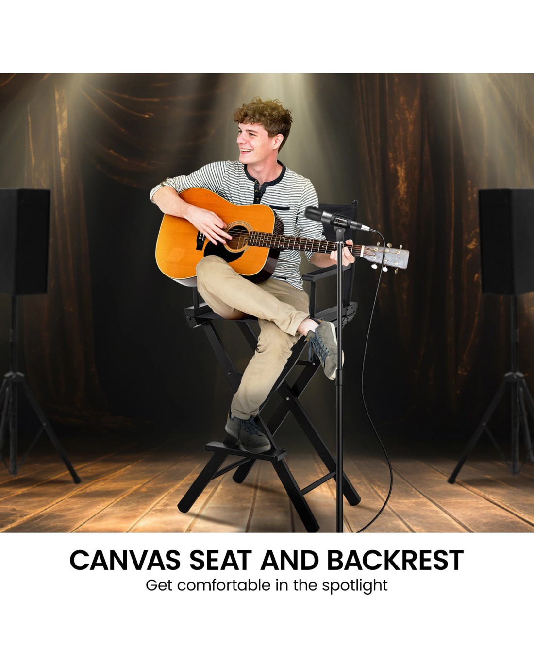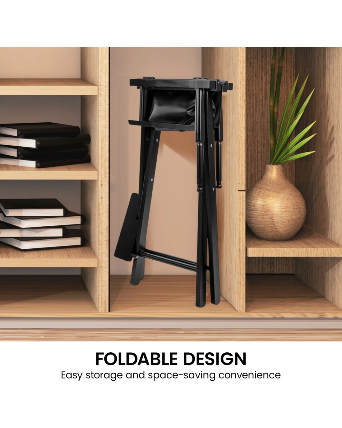 Seize the directors seat and command your space with this Sarantino Directors Chair. Its more than a mere chair its a bold statement, skillfully constructed with a beech wood frame. The black canvas seat and backrest provide great supportive comfort, while the convenient footrest amplifies the sensation of being in control. And when the curtain falls, the foldable design simplifies space management and storage. Feel the commanding position of this versatile piece.