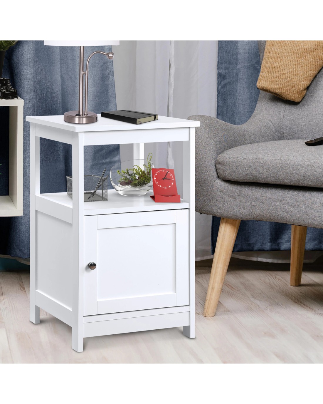 It features a discreet door cabinet that allows you to keep items hidden yet within reach. Complete with a sleek chrome handle, this end table exudes modern elegance. Crafted with attention to detail, the Corina End Table combines style, practicality, and versatility, making it the perfect addition to your living room.