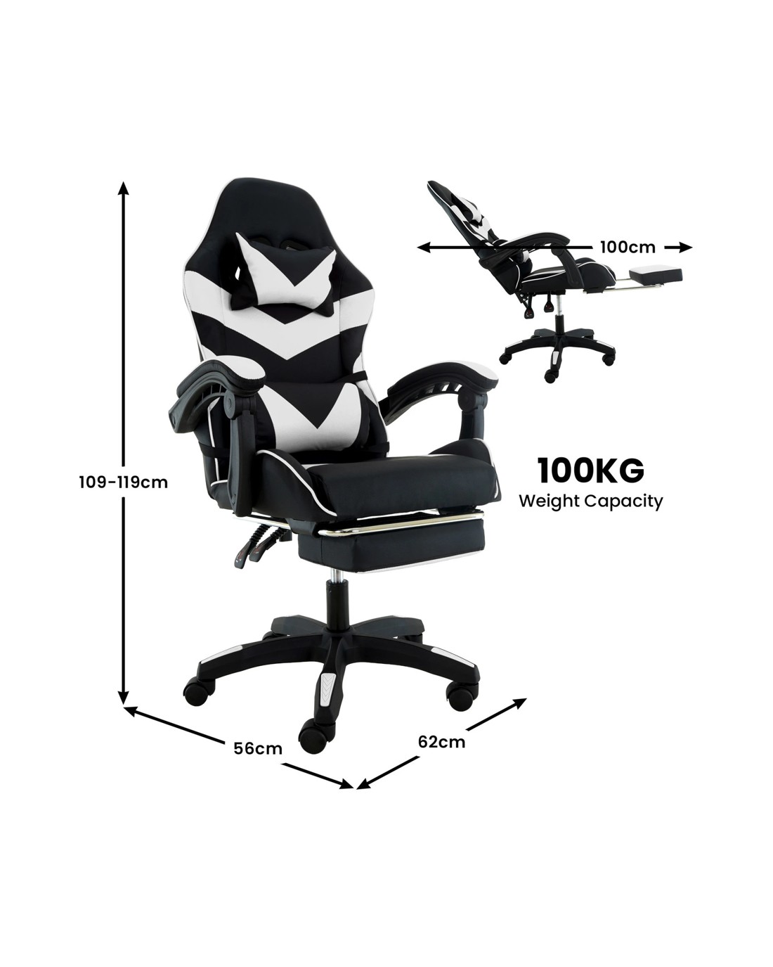 The Cueva reclining office gaming chair is the upgrade your setup needs. Upholstered with a stylish faux leather finish and plenty of padding, this chair is made for long gaming marathons or work sessions. The high backrest, retractable footrest and 135 recline offer plenty of comfort when it is time to take a breather.