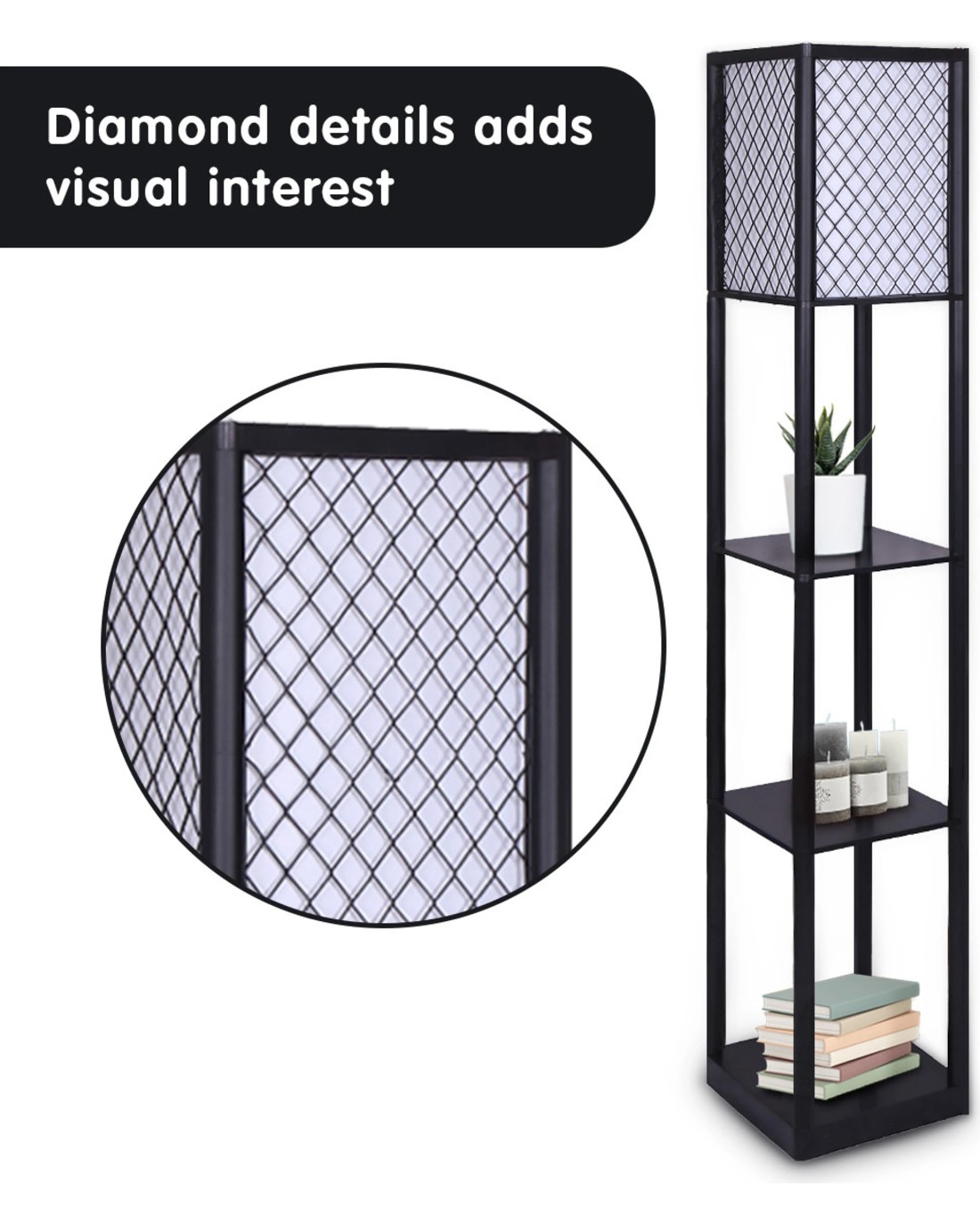 Sold by Klika GroupSarantino Etagere Floor Lamp Diamond Look Fabric Shade Shelves Black