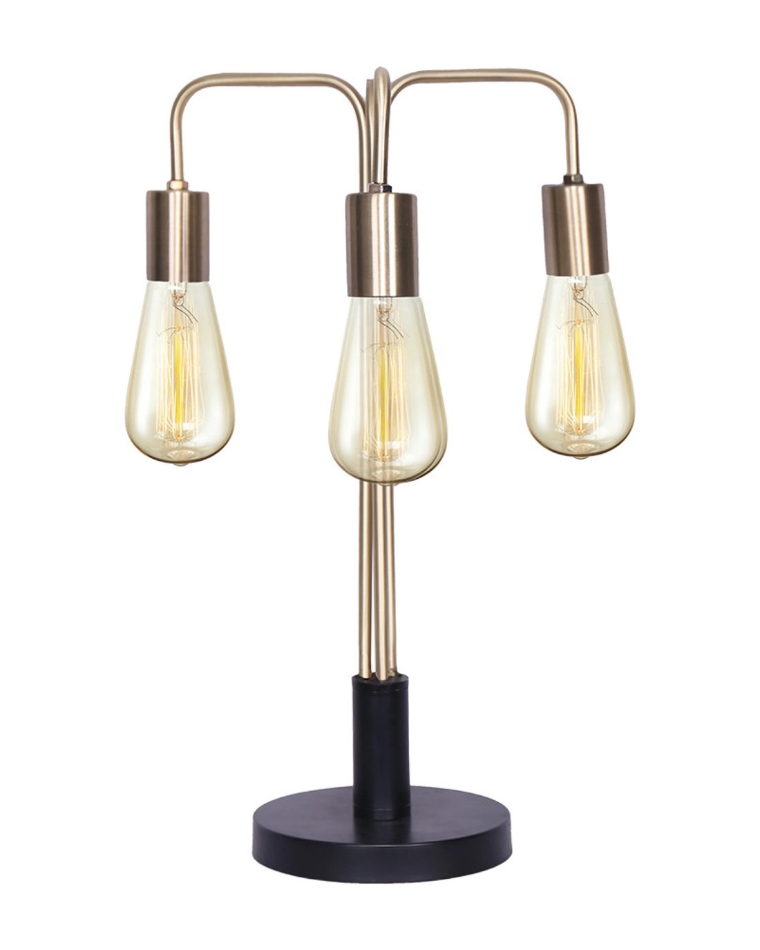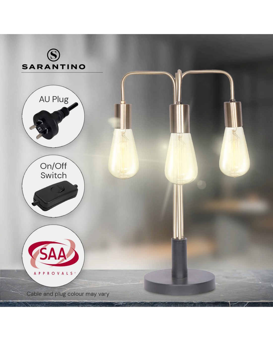 The Sarantino Industrial table lamp is designed for a modern and elegant look. It features a metal lamp base with exposed bulbs for an added industrialised touch. A rotary switch on the metal post makes it easy to switch on and off.