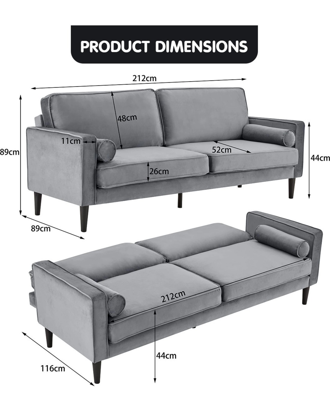 Sarantino Faux Velvet Sofa Bed Couch Furniture Lounge Suite Seat Grey