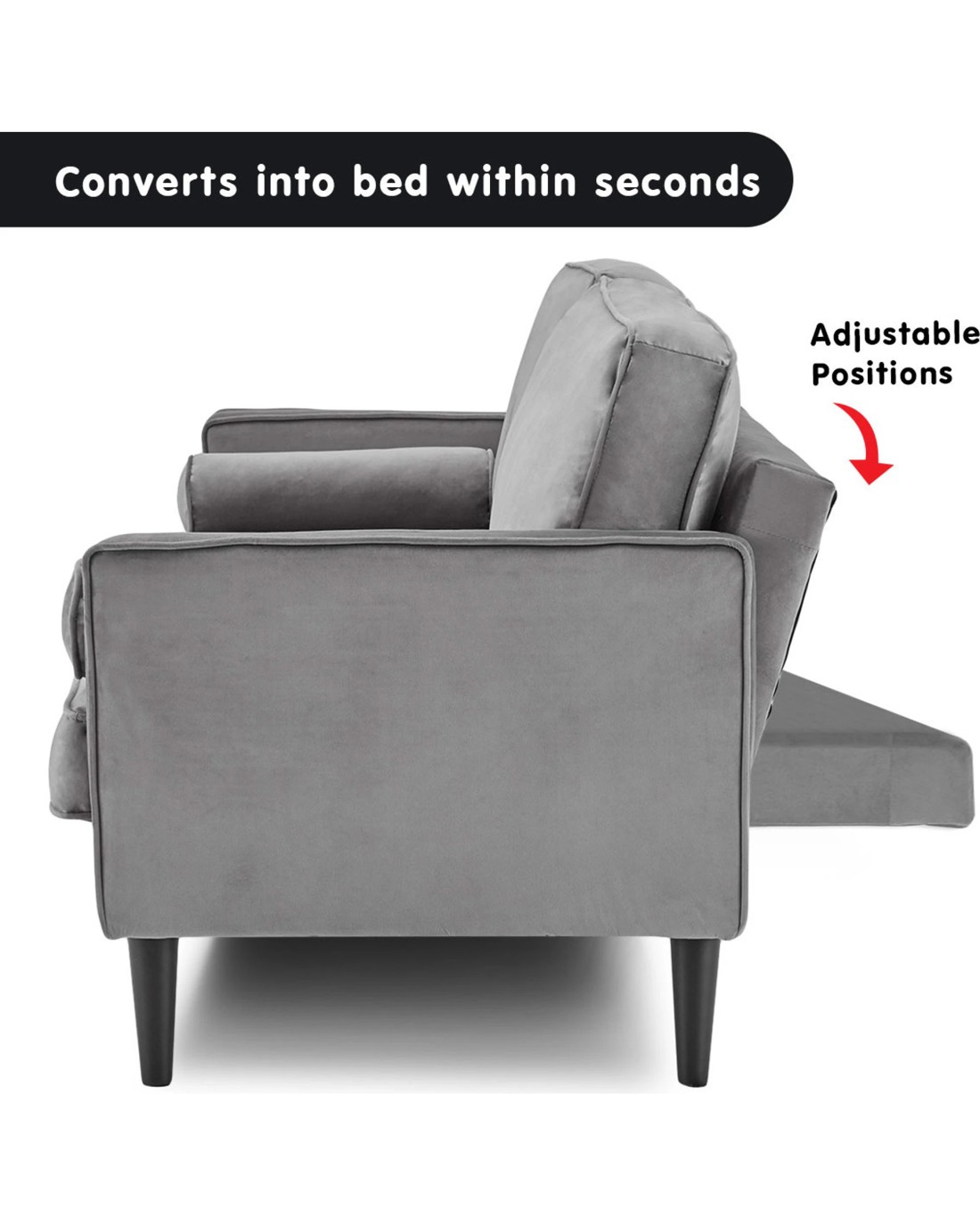 It's easily convertible into extra bedding space for your visitors It features luxurious faux velvet fabric and cushioning providing superior comfort. Highly practical and served with a modern flair.