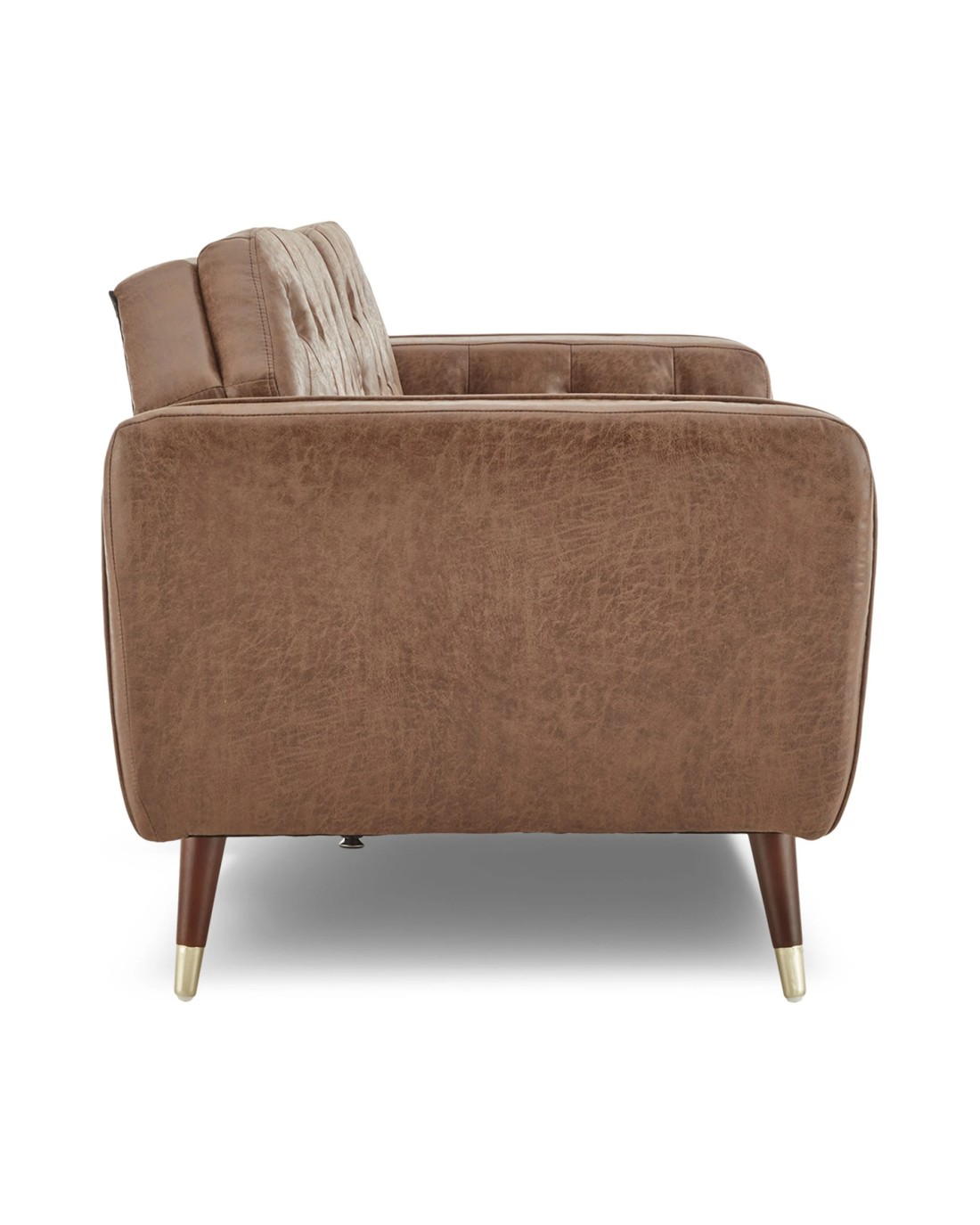 This sofa constructed with faux leather and blessed with classic good looks with beautiful wooden legs. It will make a strong style statement in any home. It has both a modern and retro style to enhance your decor.