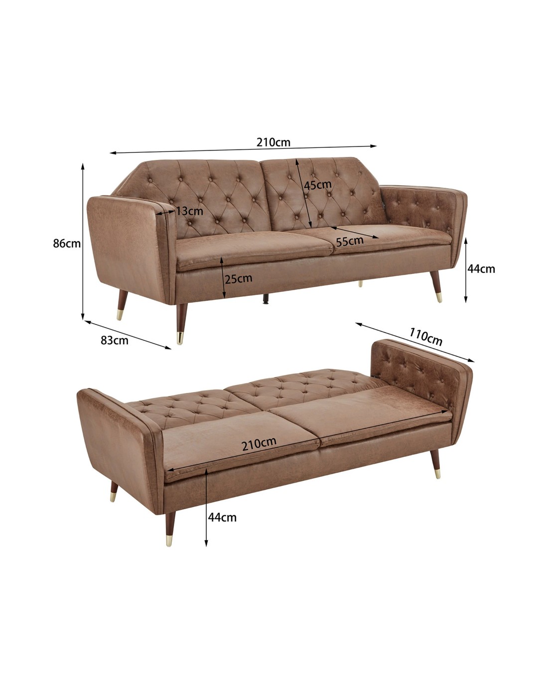 - Sofa Bed: 210cm (w) x 110cm (d) x 44cm (h)