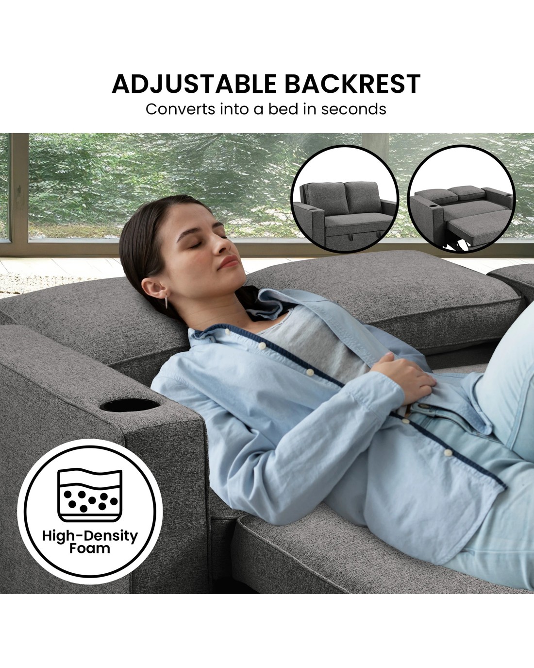 Disclaimer: Please note that the sofa bed cushions are not removable and are attached to the backrest.
