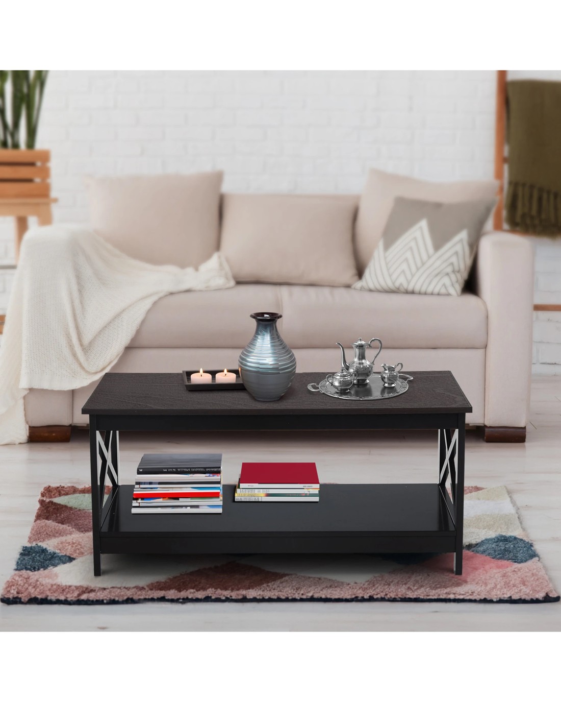 Designed with functionality in mind, this coffee table features a convenient bottom shelf. This additional storage space allows you to keep your favourite books, magazines or decorative items within easy reach, while also maintaining a clutter-free tabletop.