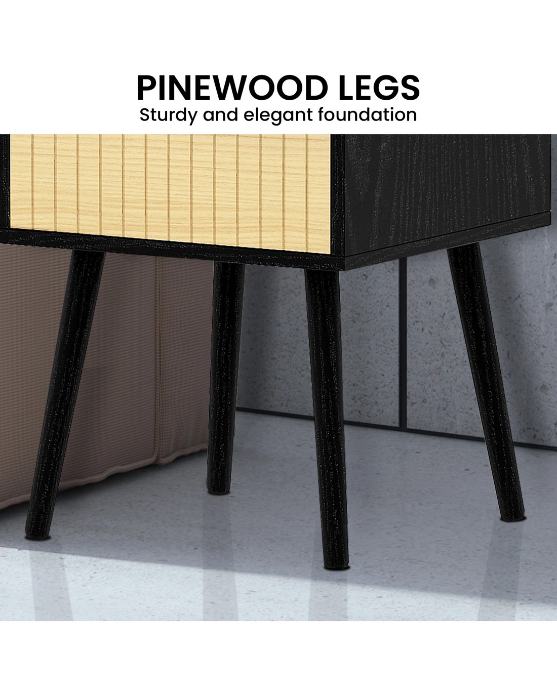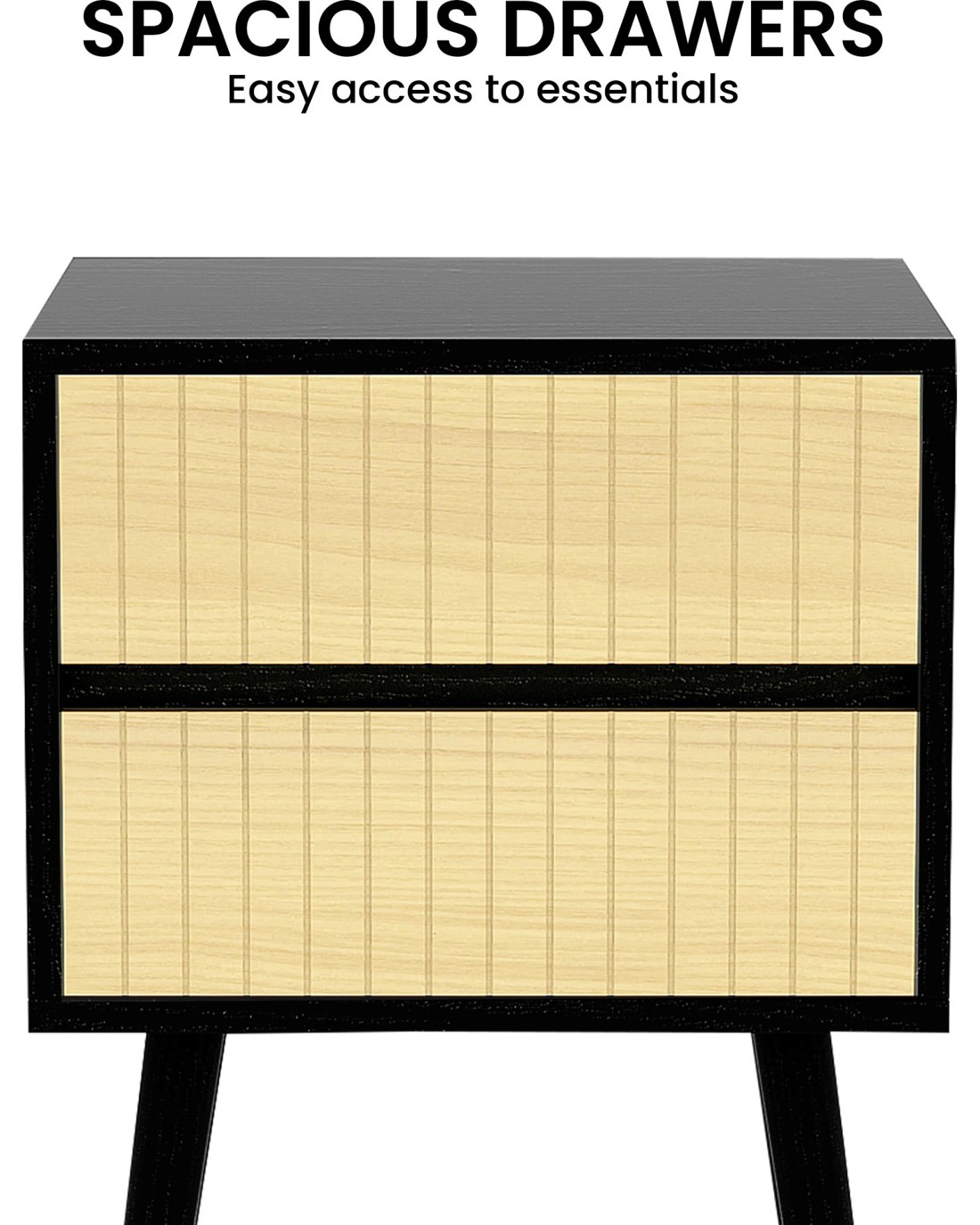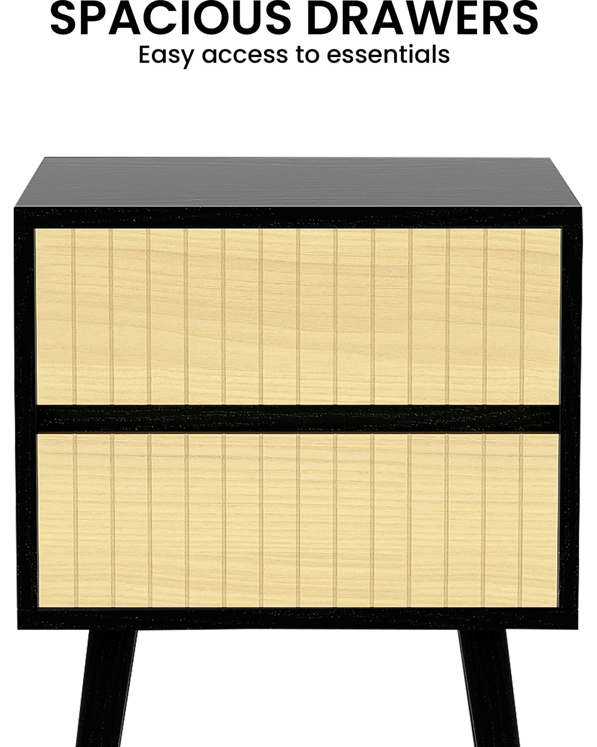 Sarantino Ivan Bedside Table Night Stand - Black Natural
