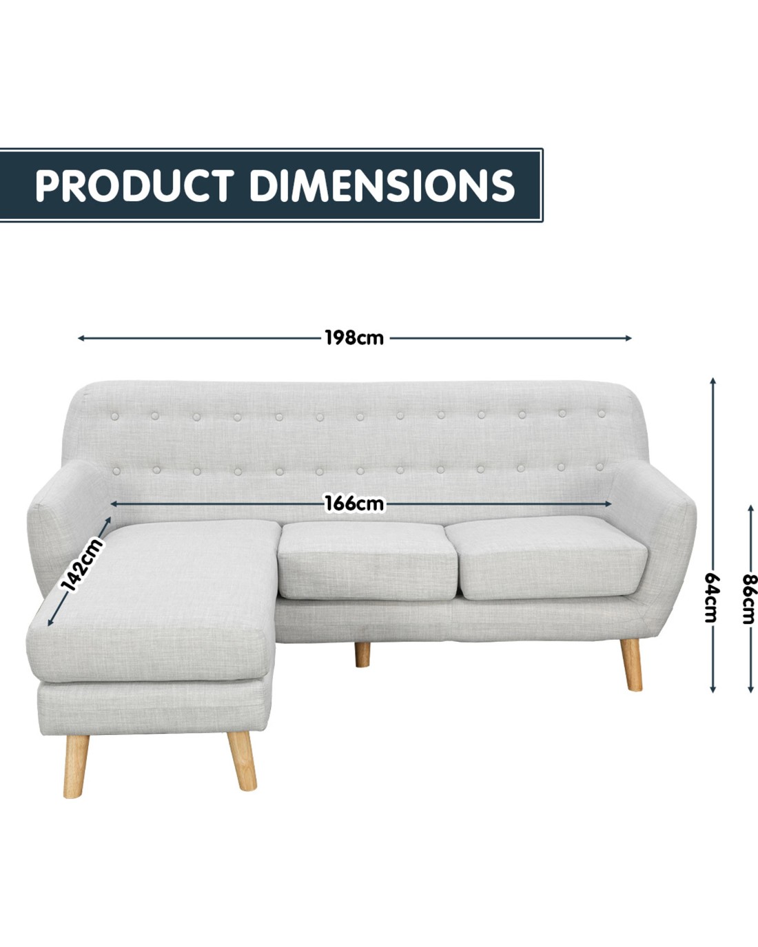 Upholstered in an easy-clean, high-grade, linen fabric with durable stitching, this 3 seater sofa with chaise gives you the contemporary and luxury look.