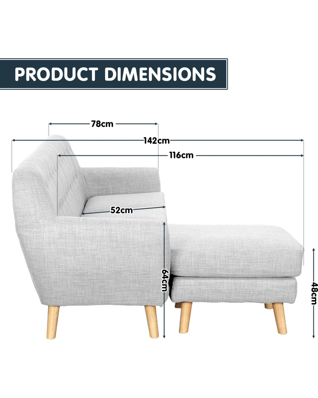 Sold by Klika GroupSarantino Linen Corner Sofa Lounge L-shaped Chaise Light Grey