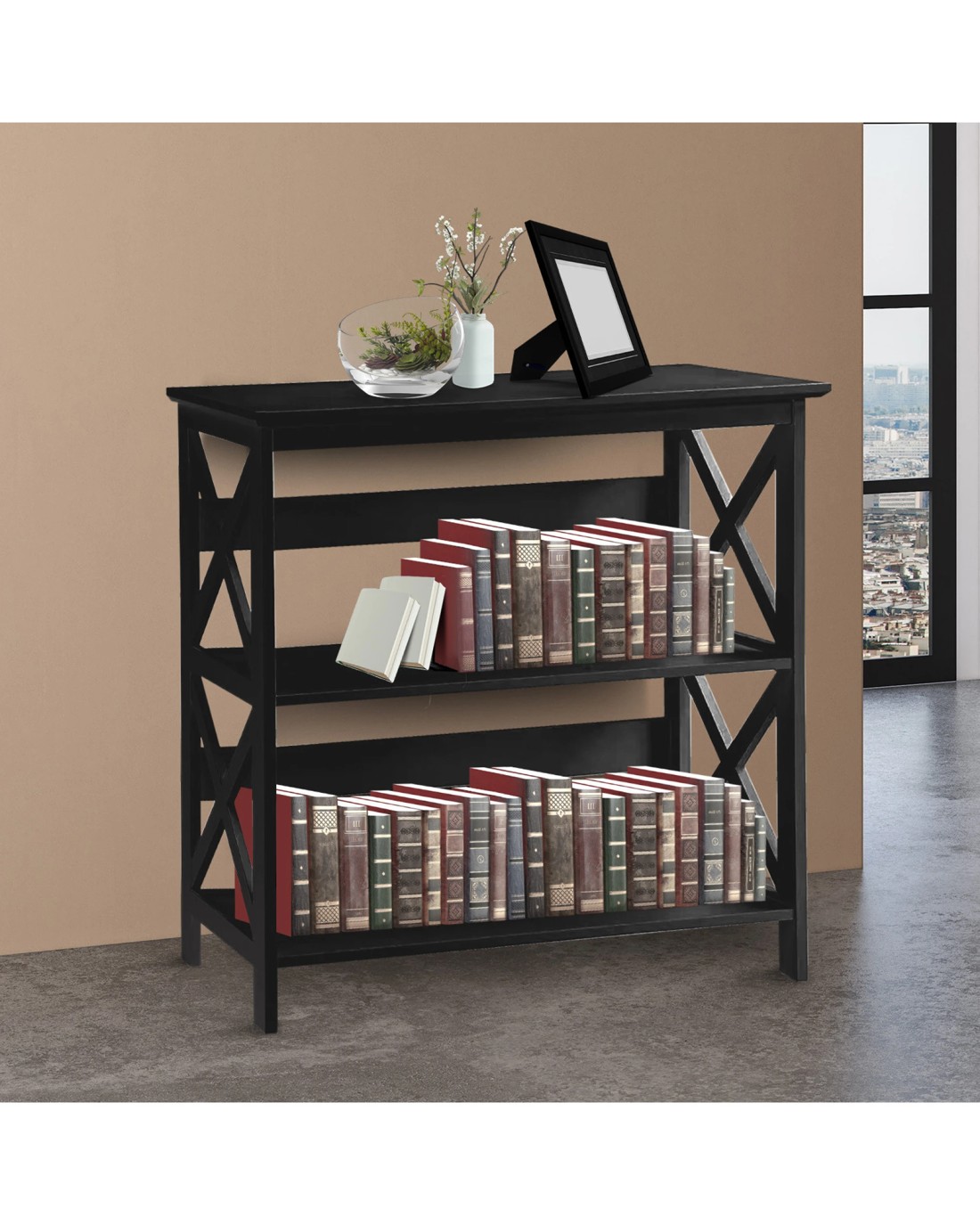 The Sarantino Lucas 3-Tier Bookcase is a stylish and contemporary statement piece that will truly make a lasting impression. With its sleek design, three-tier shelf design, and elegant side panels featuring a simple yet elegant design, this bookcase is a must-have addition to your home.
