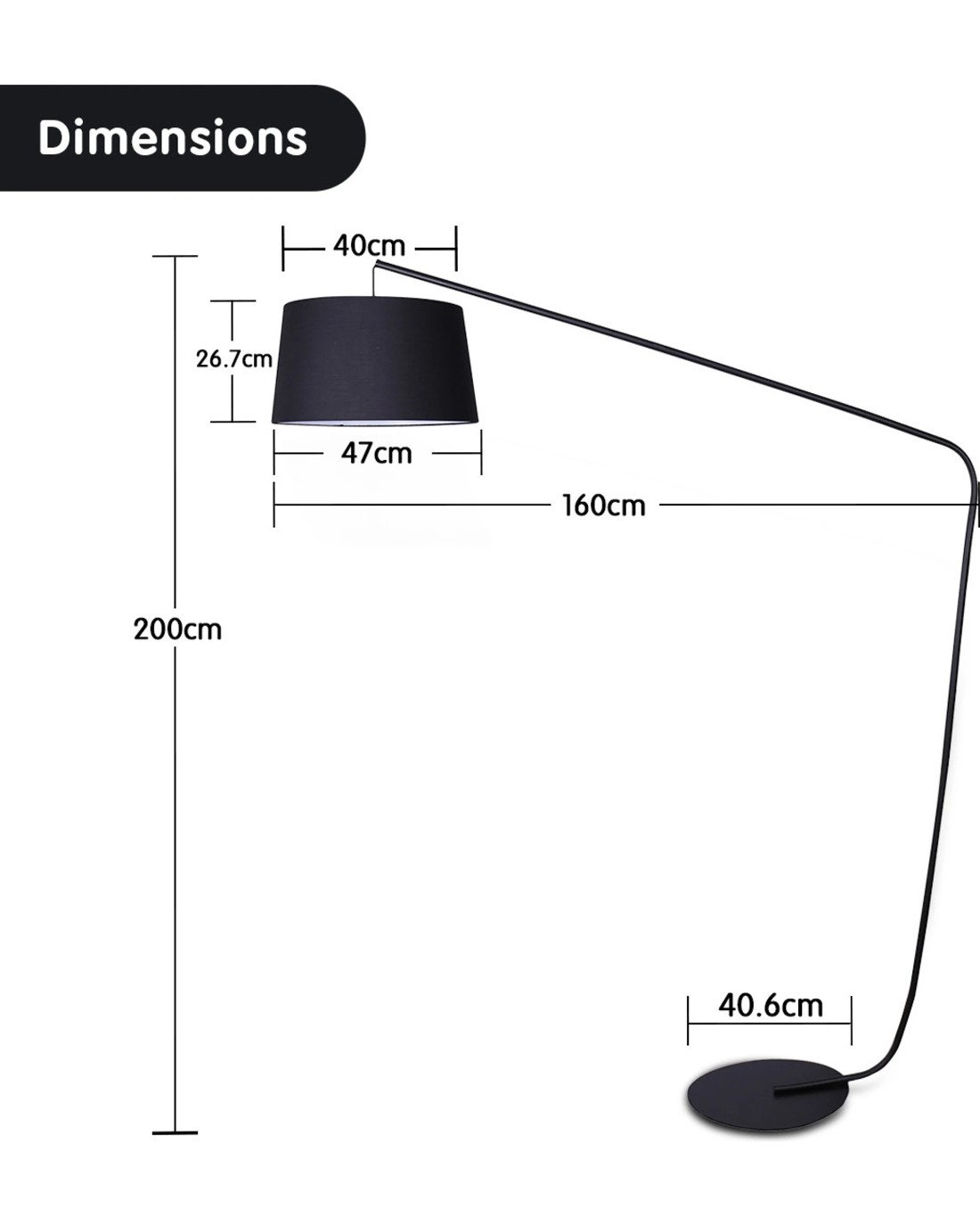 This floor lamp is tall enough to provide overhead lighting, making it a great alternative to hanging pendant lights. Its arm has a wide reach so you can place it over any desk or dining table for added lighting. The black shade also diffuses light for a softer and cosier effect.
