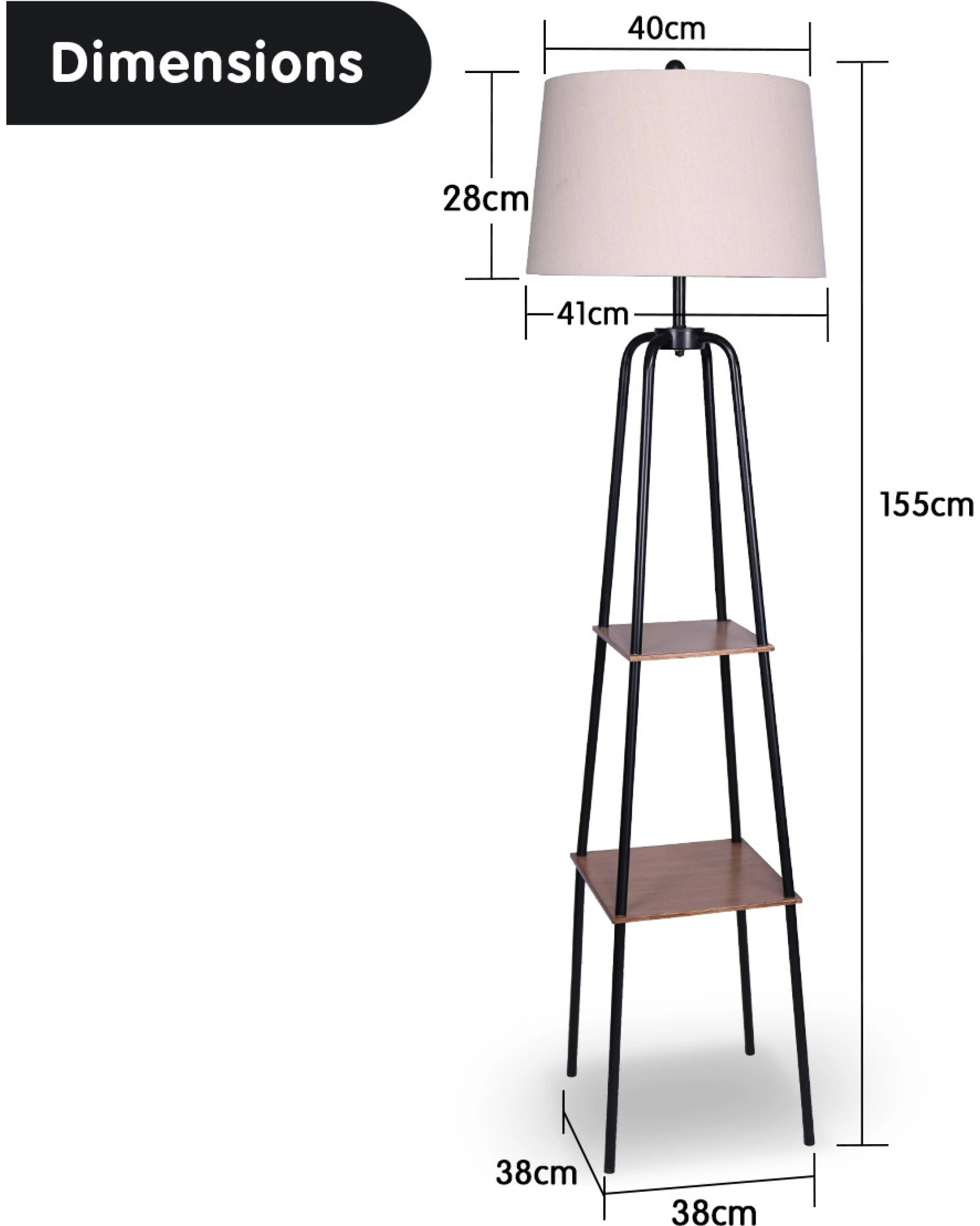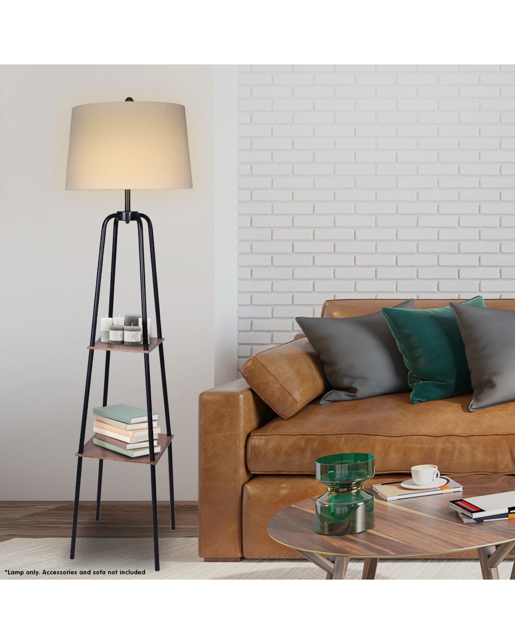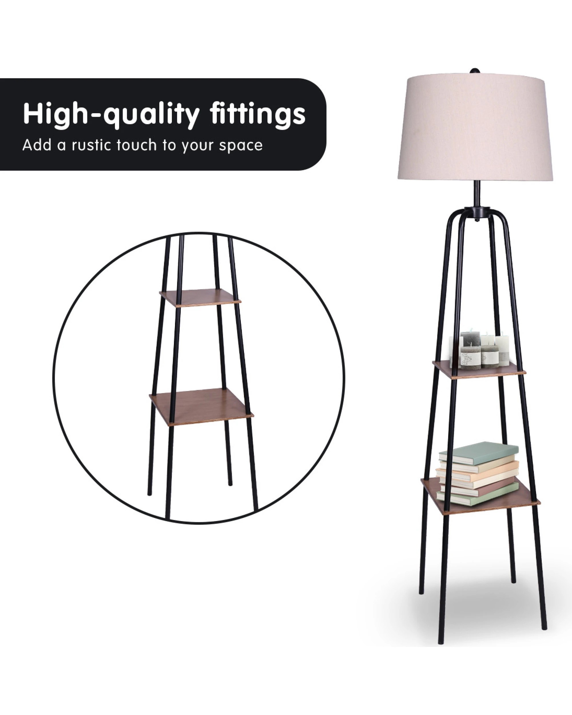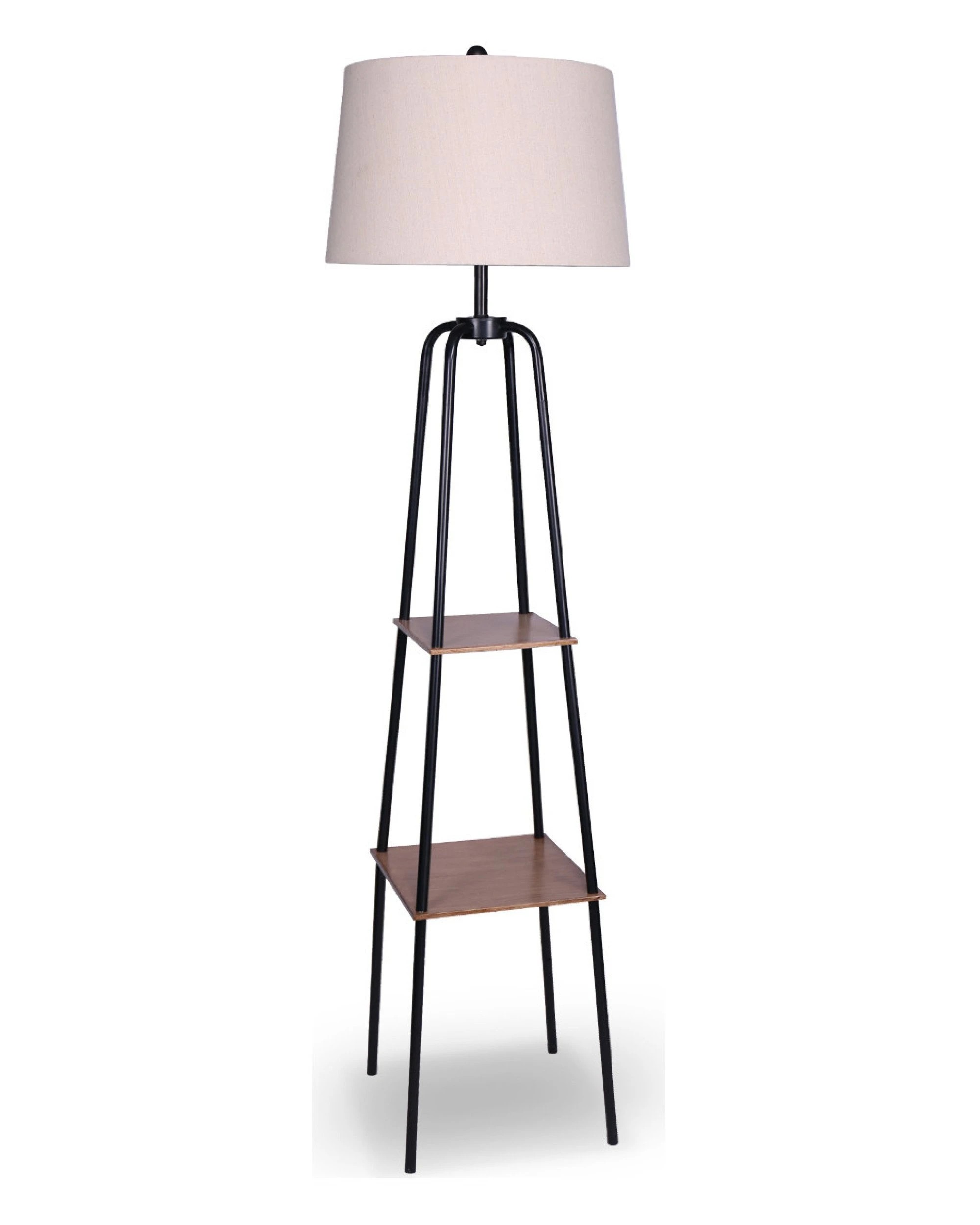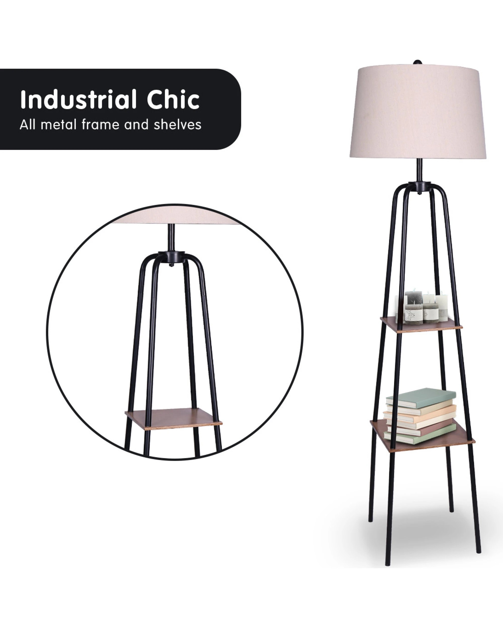 Sarantino Metal Etagere Floor Lamp Shade Metal Shelf In Wood Finish