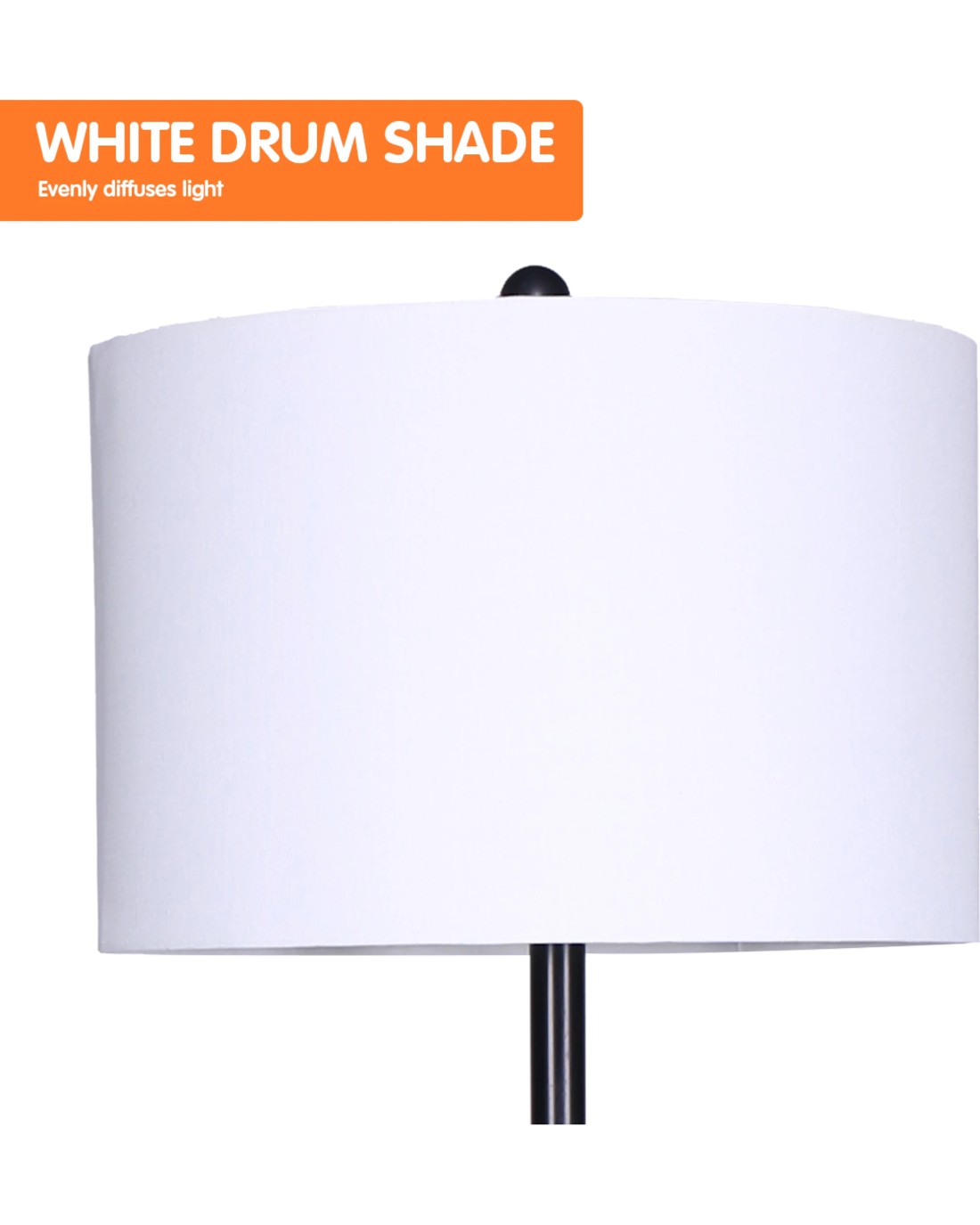 The metal base ensures stability and durability, making this floor lamp an overall excellent buy. This shelf floor lamp also works well with 60-watt E27 bulbs (not included) so you can create the perfect mood for your space. Its white drum shade casts an even, diffused glow and makes this lamp ideal for both functional and ambient lighting.