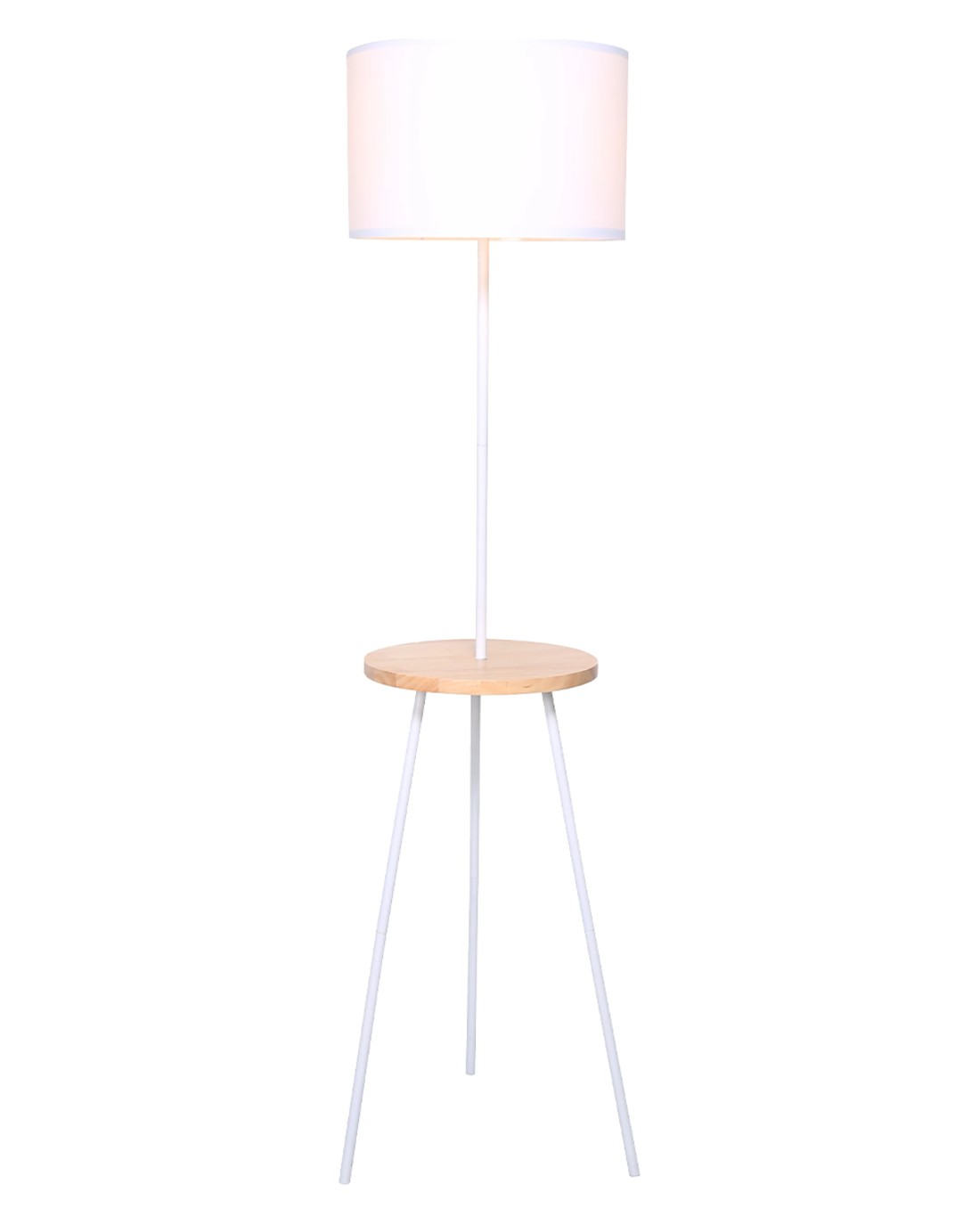 This floor lamp can also be used as a combination nightstand and bedside lamp. The white drum shade diffuses light for a soft ambient glow, and you can use a warm E27 globe (not included) for a more relaxing effect.