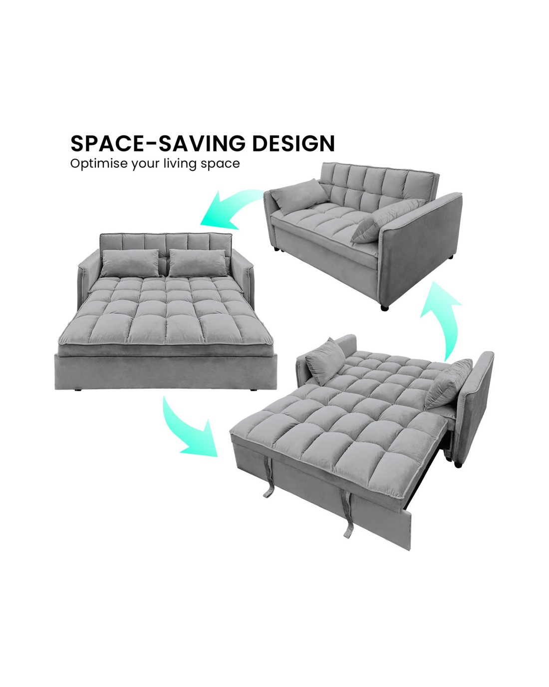 Sarantino Quincy 2-seater Velvet Sofa Bed In Dark Grey With Wooden Frame And Tufted Design