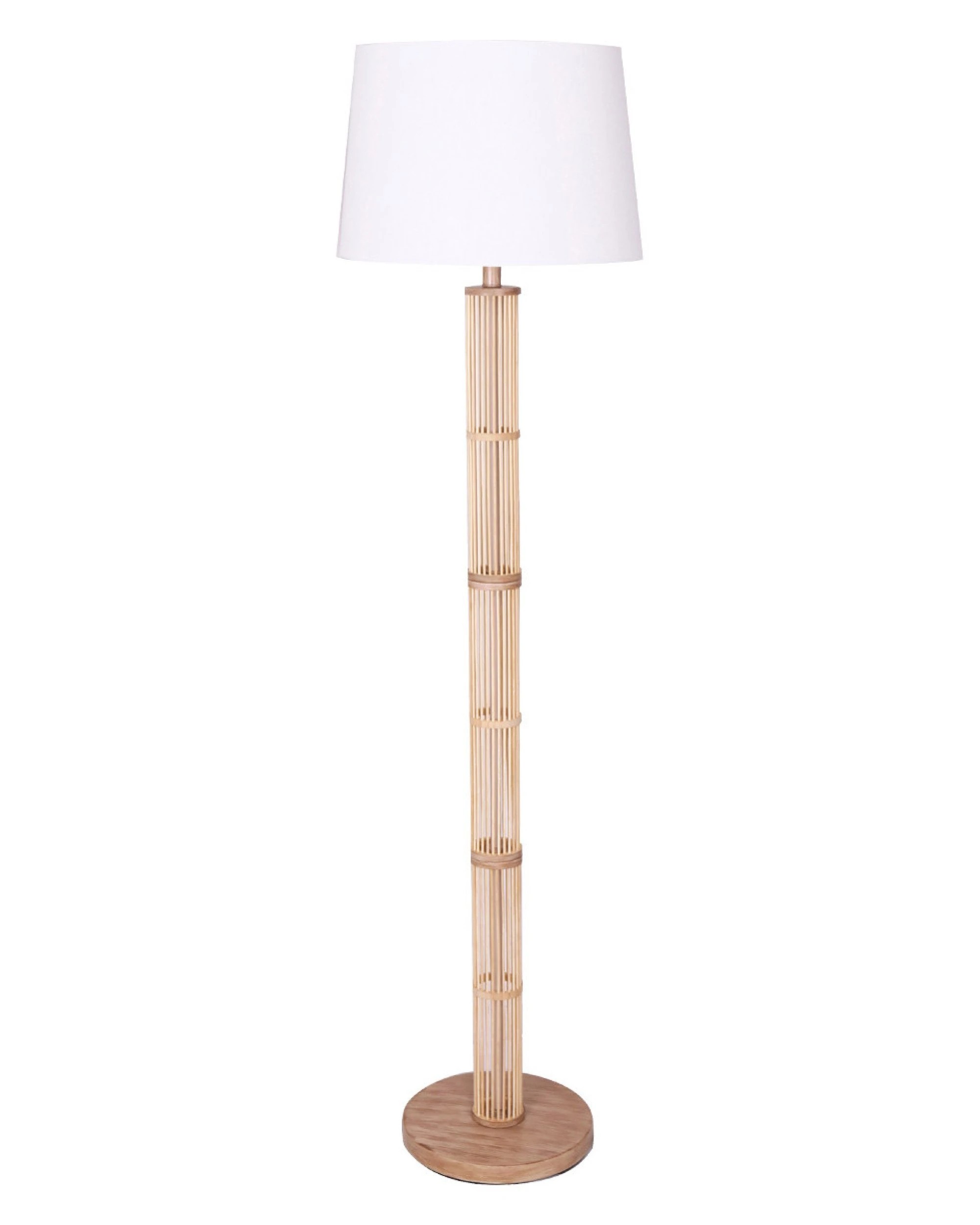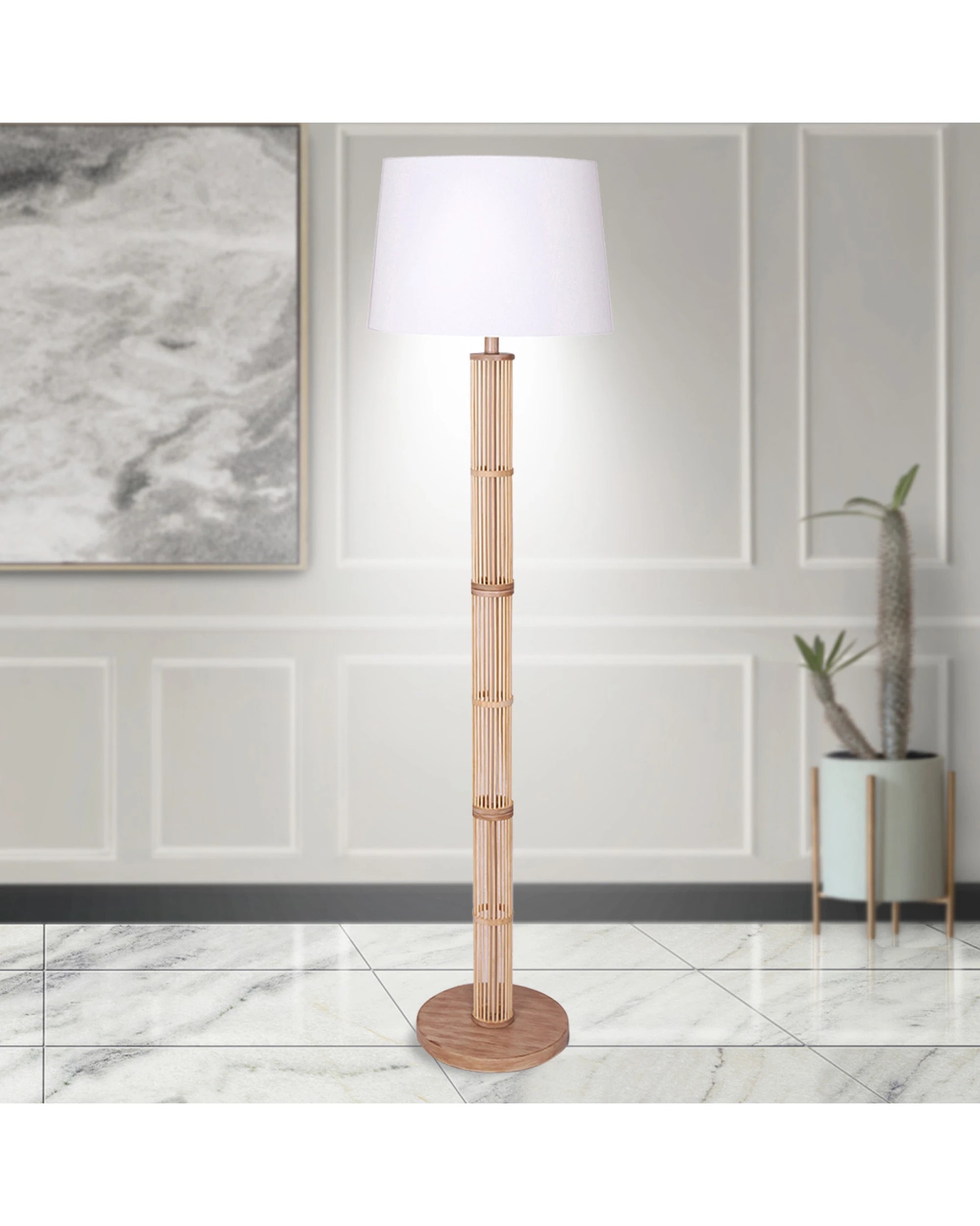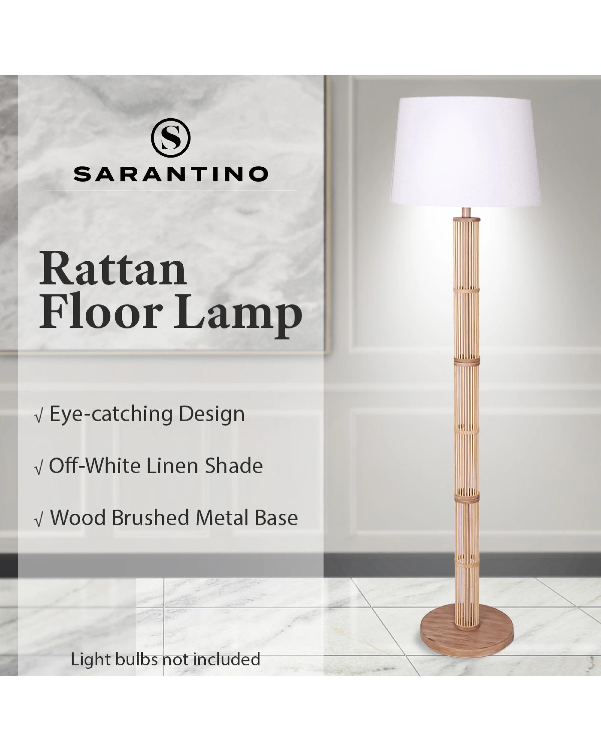 Sarantino Rattan Floor Lamp With Off-White Linen Shade