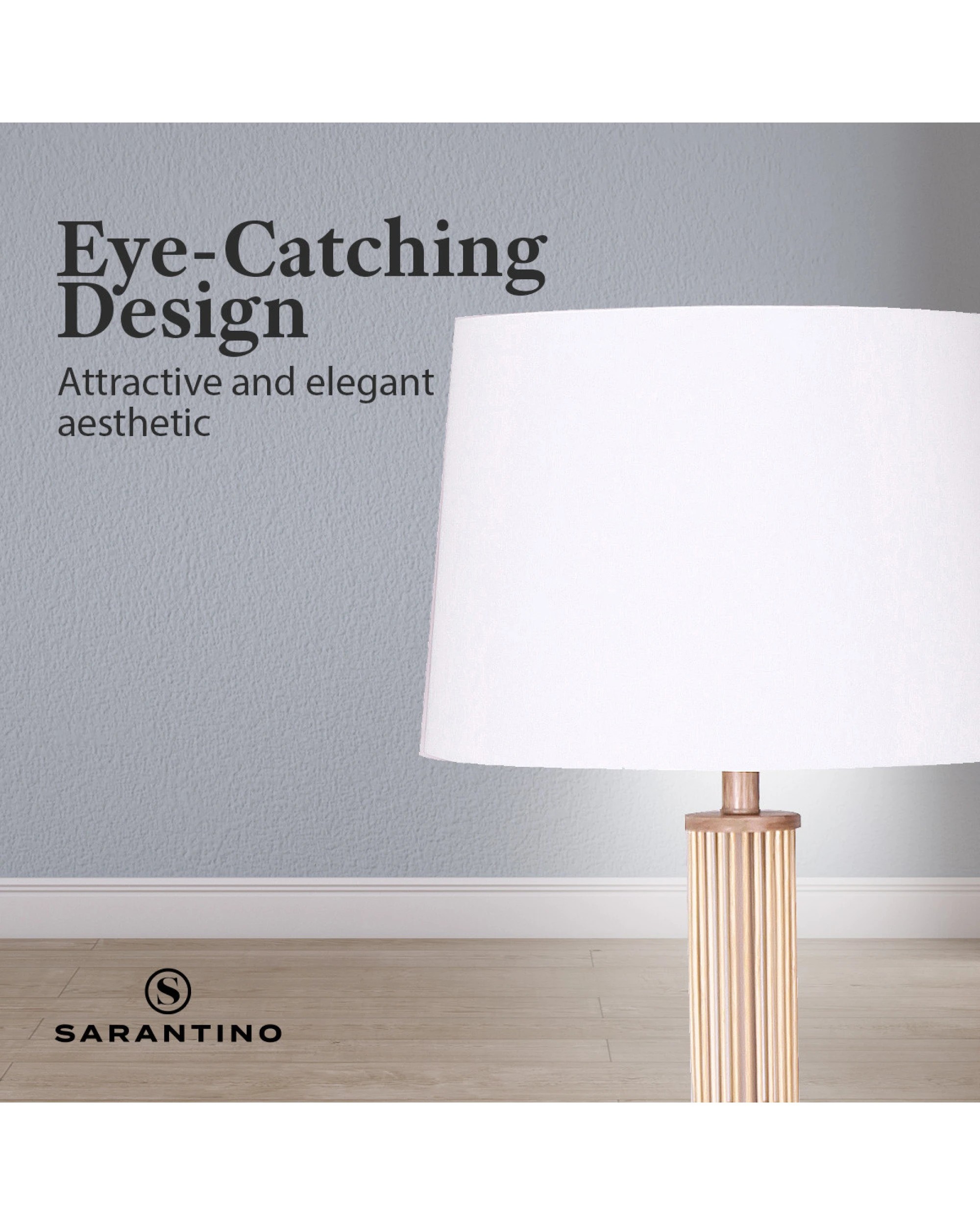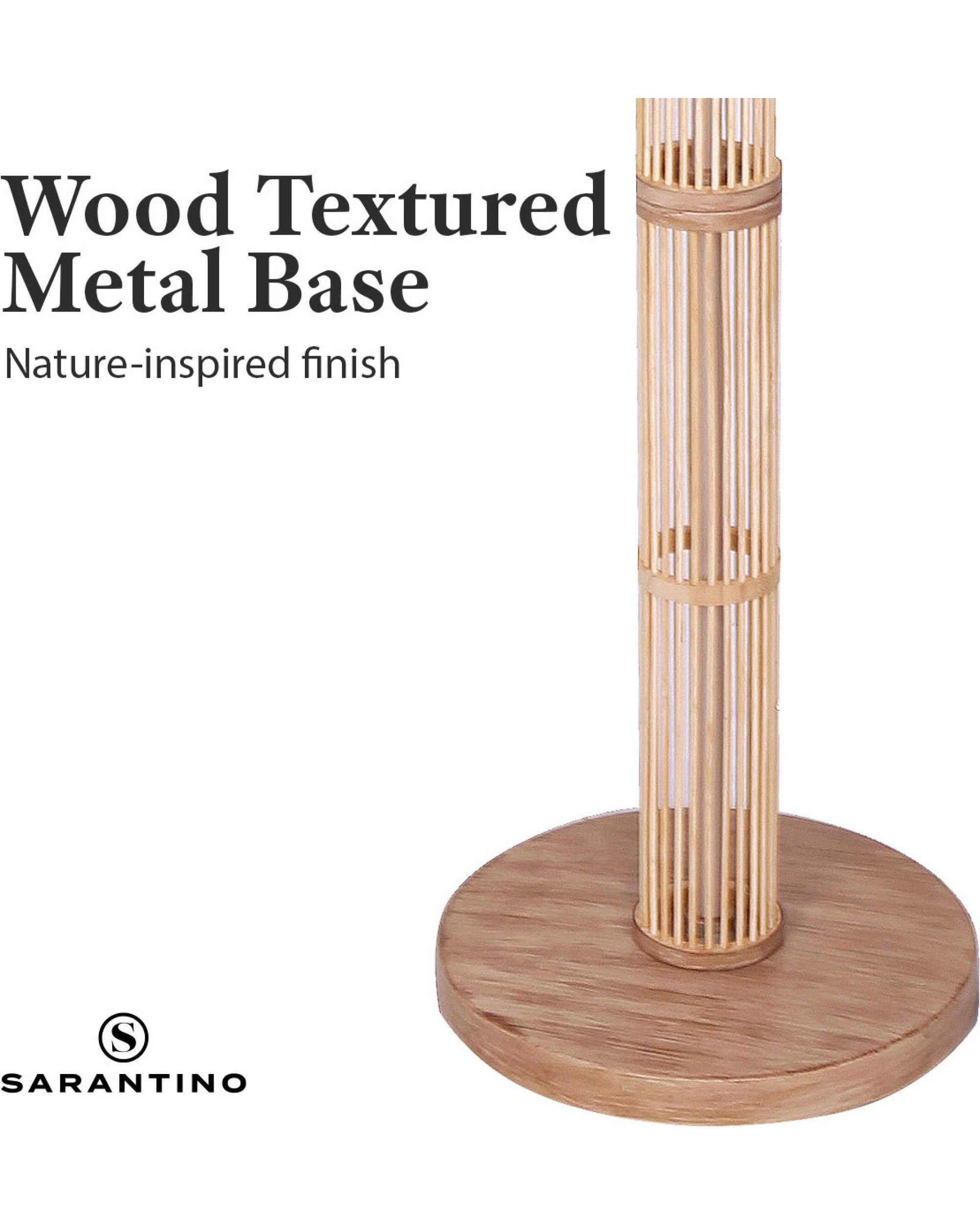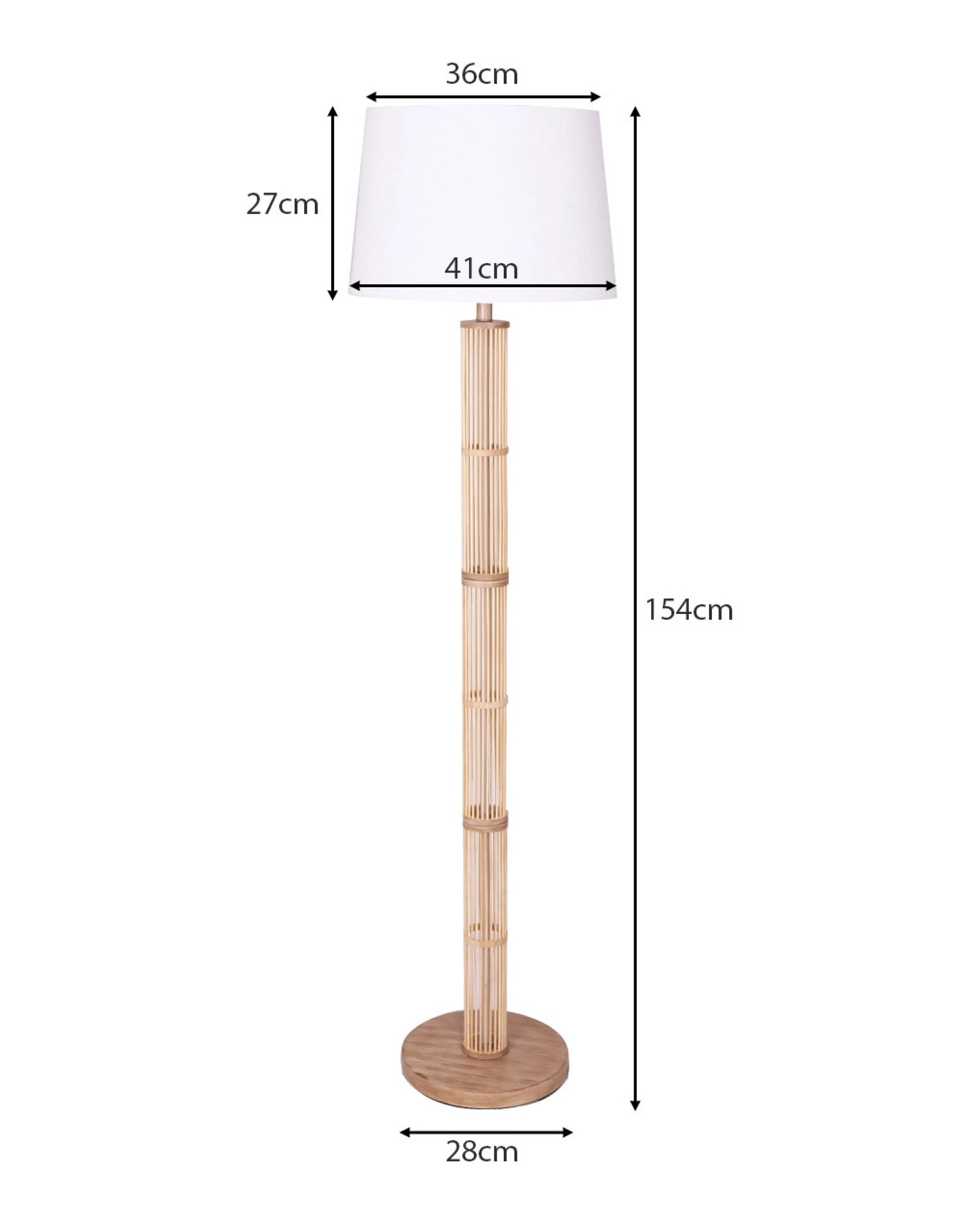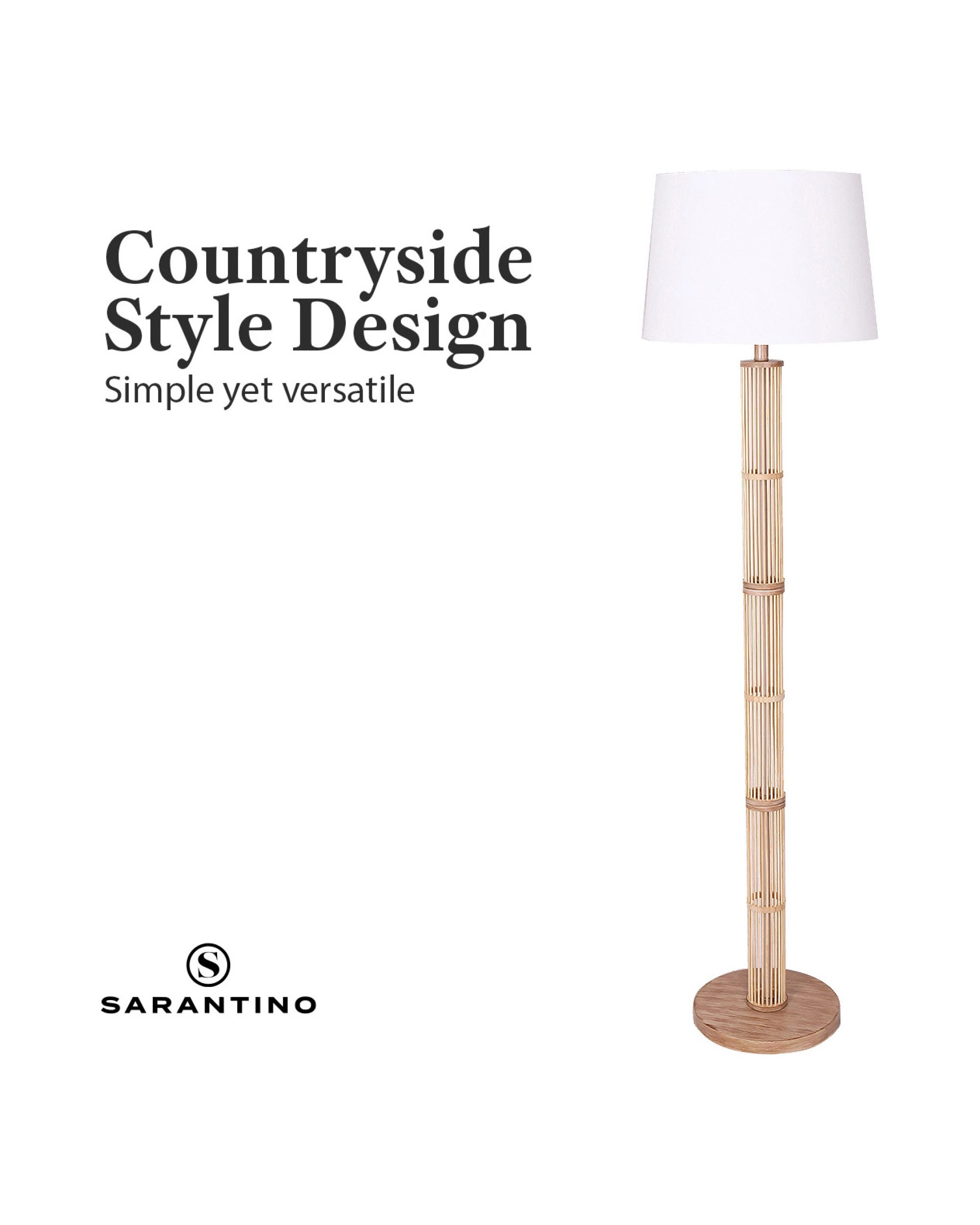 Sarantino Rattan Floor Lamp With Off-White Linen Shade