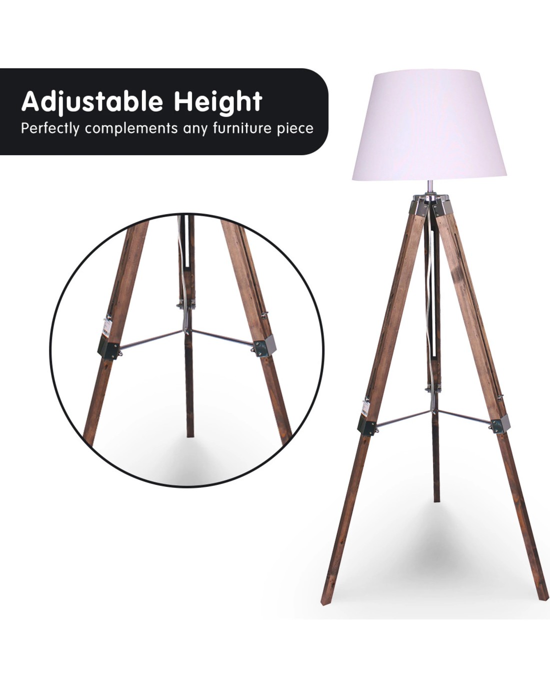 The tripod's height is adjustable, making this floor lamp suitable for a variety of interior styles and layouts. Use it as a bedside lamp or maximize the height to complement your armchair or desk.