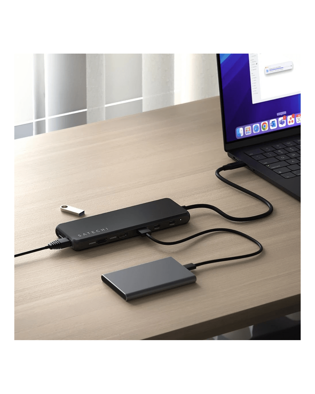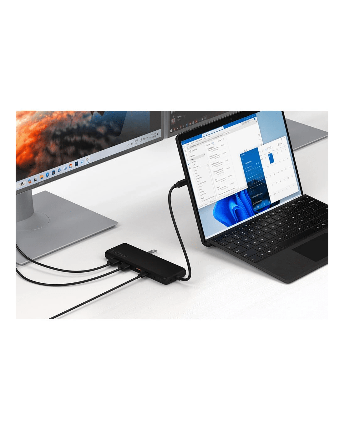 This 13 in 1 Triple Display Dock from Satechi offers an all-in-one solution for extending connectivity across multiple monitors without the use of third-party software. It's made for both Windows and Mac systems and supports Multi-Stream Transport (MST) for Windows, enabling triple extended displays with 4K/60Hz via DisplayPort and 4K/30Hz via HDMI on compatible host devices. Plus, it also supports up to 8K video output through DisplayPort for Windows devices.