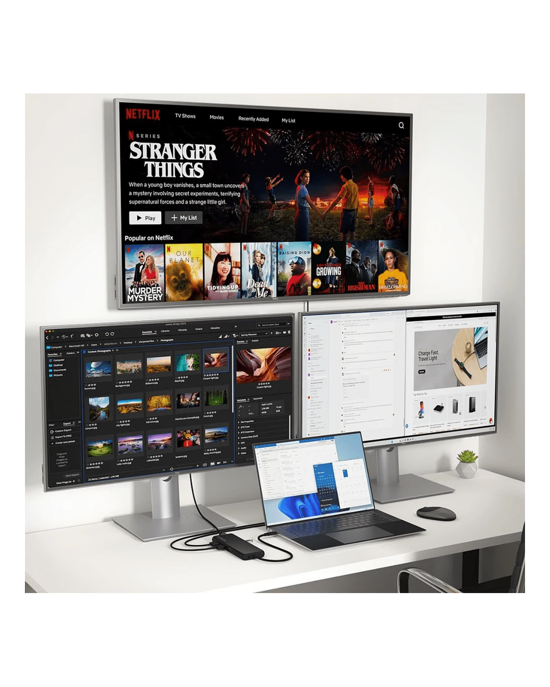 • You can seamlessly extend your display across 3 monitors at 4K/60Hz via DisplayPort and 4K/30Hz via HDMI on compatible devices thanks to the Multi-Stream Transport (MST) for Windows.