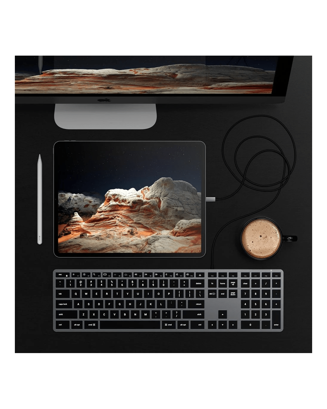 The Satechi Slim W3 Keyboard is a sleek companion for your productivity whether you're at home, or on the go. It has an extended layout with a numeric keypad and convenient shortcut keys optimised for macOS devices, as well as adjustable backlighting to suit your needs. It connects via USB-C for simple, plug-and-play use.