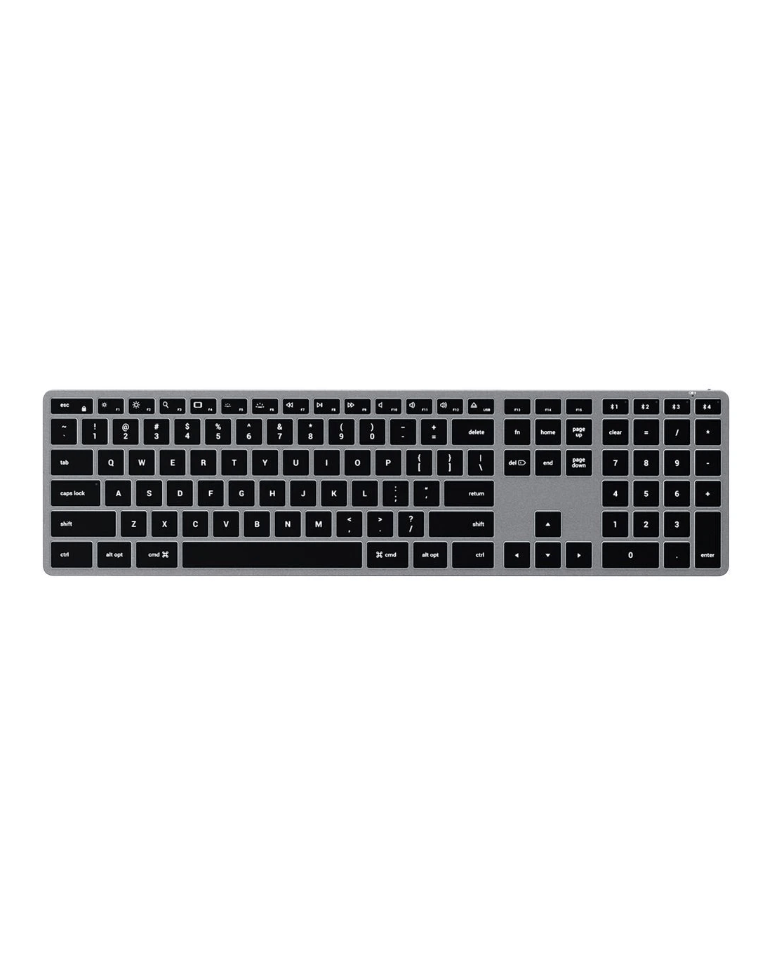 The Satechi Slim X3 is a great way to optimise your work station, whether you're at home or in the office. It has an extended layout with a numeric keypad, macOS focused function keys, and wireless connectiv ity via Bluetooth, with multi-device capabilities. It has adjustable bvacklit keys and easy recharging via the USB-C port.