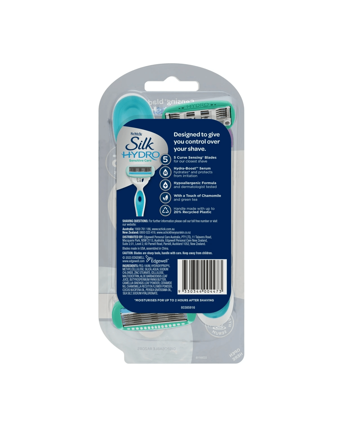 The Schick® Silk Hydro Sensitive Care Disposable Razor features a Hydra-Boost serum formulated with shea butter and sea minerals.