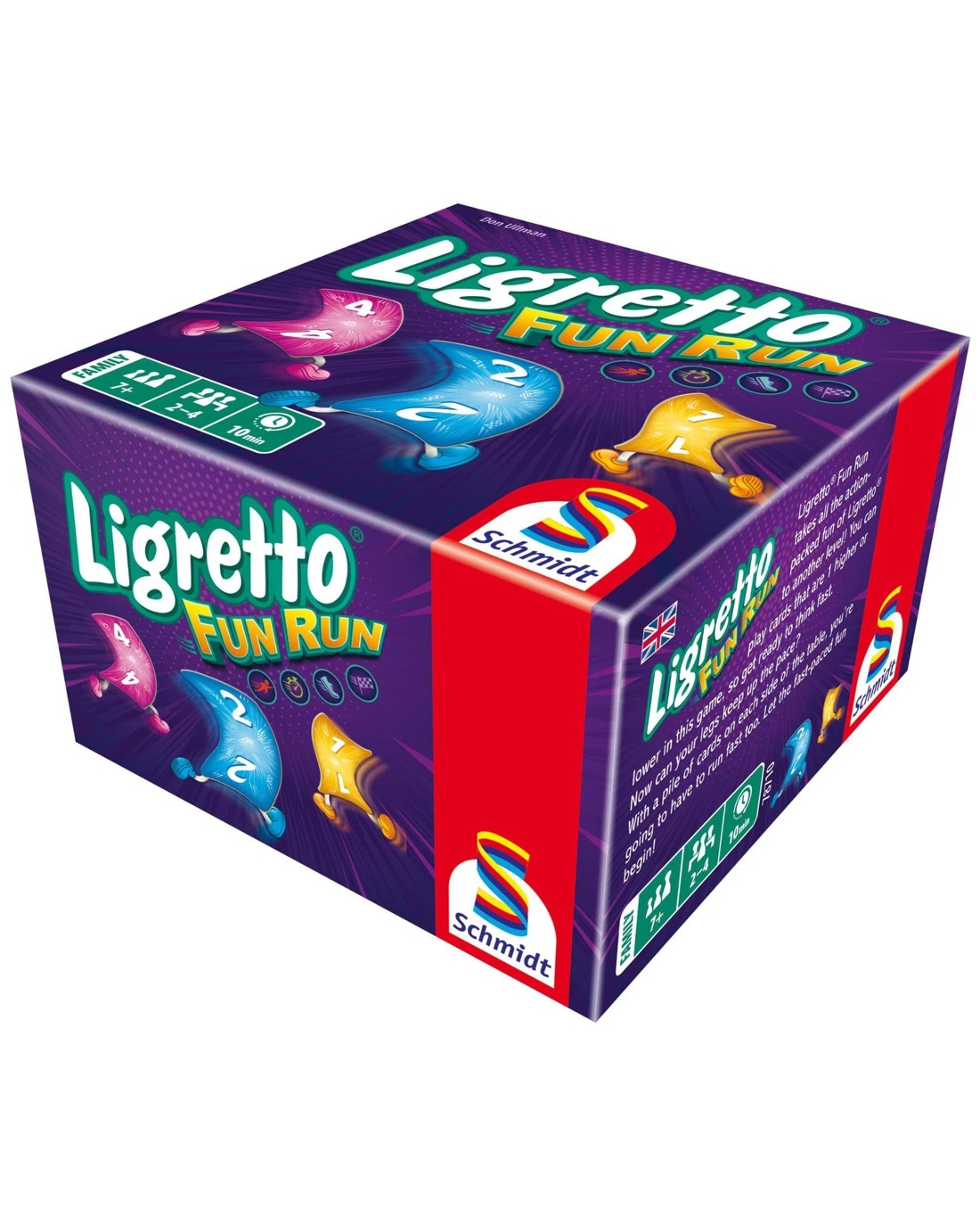 Ligretto Fun Run takes all the action-packed fun of Ligretto® to another level! You can play cards that are 1 higher or lower in this game, so get ready to think fast. Now can your legs keep up the pace? With a pile of cards on each side of the table, you're going to have to run fast too. Let the fast-paced fun begin! As with all Ligretto games, the aim of the game is to get rid of all the cards in your Ligretto pile as fast as you can. In Ligretto Fun Run, you have to place your piles of cards on different sides of the table. You can only play cards from the pile on the side of the table you are standing at. In other words, you need fast hands and fast legs to end up with the most points. Ages: 7 + | Players: 2 - 4 | Playtime: 10 min
