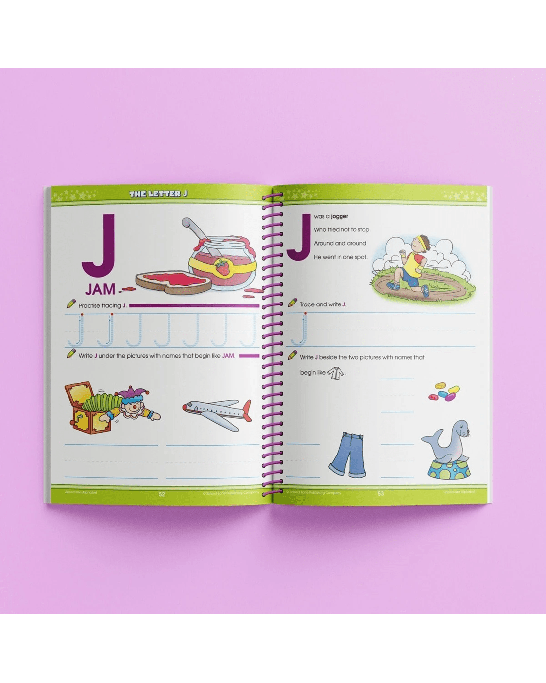 The School Zone: Big Spiro Alphabet Workbook is filled with engaging exercises from learning the alphabet, letter tracing, letter recognition to printing letters, shapes and numbers - and even includes colouring pages!