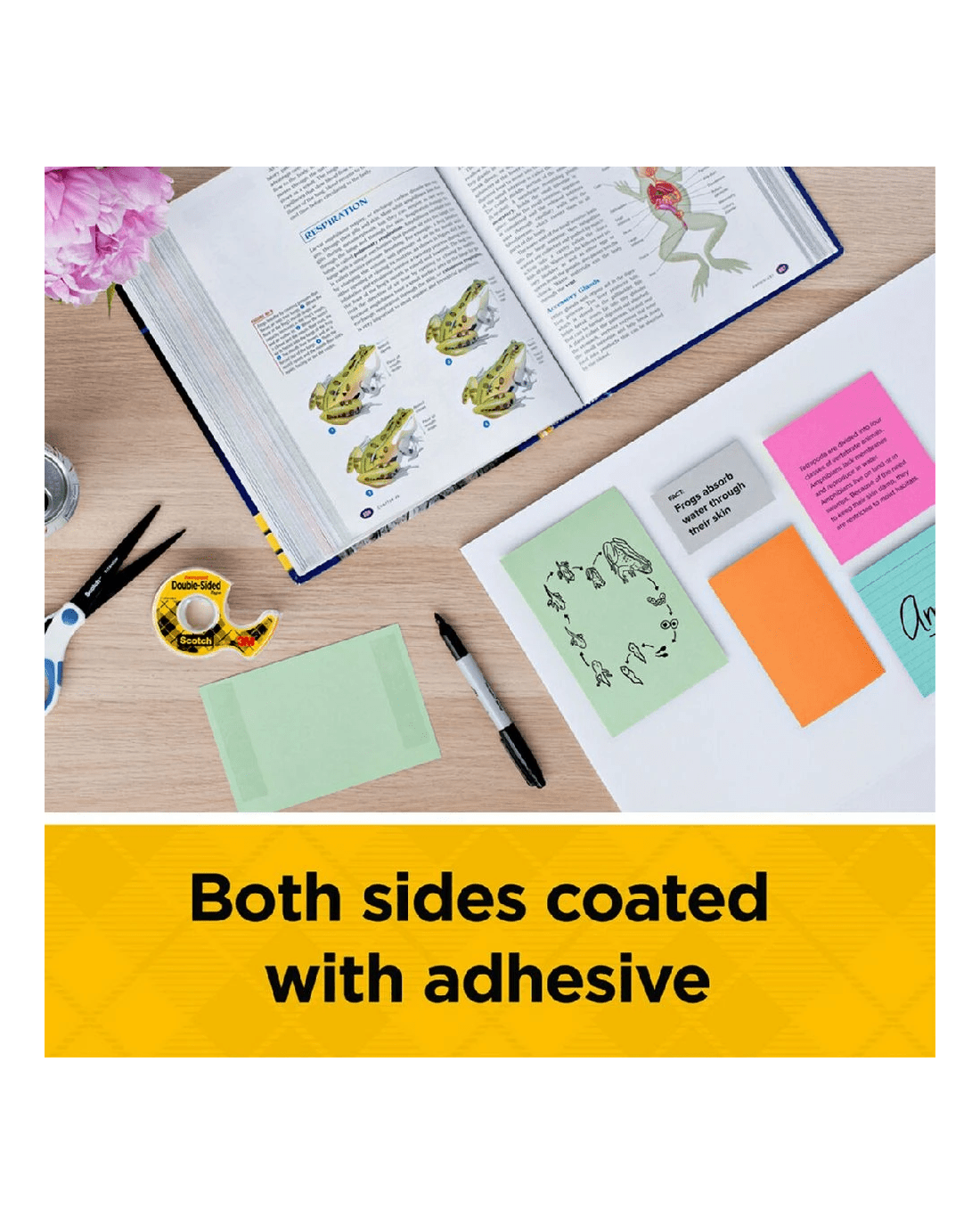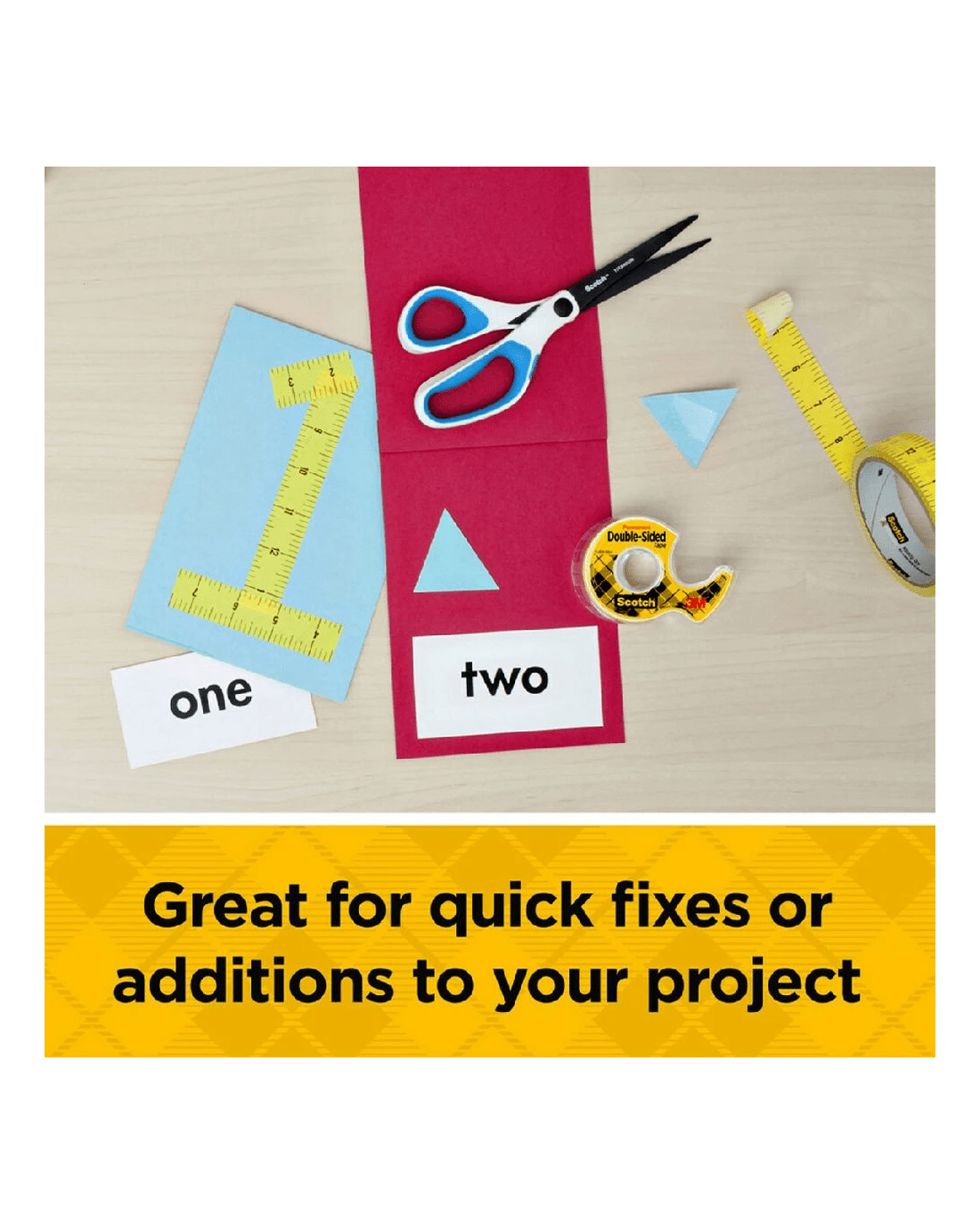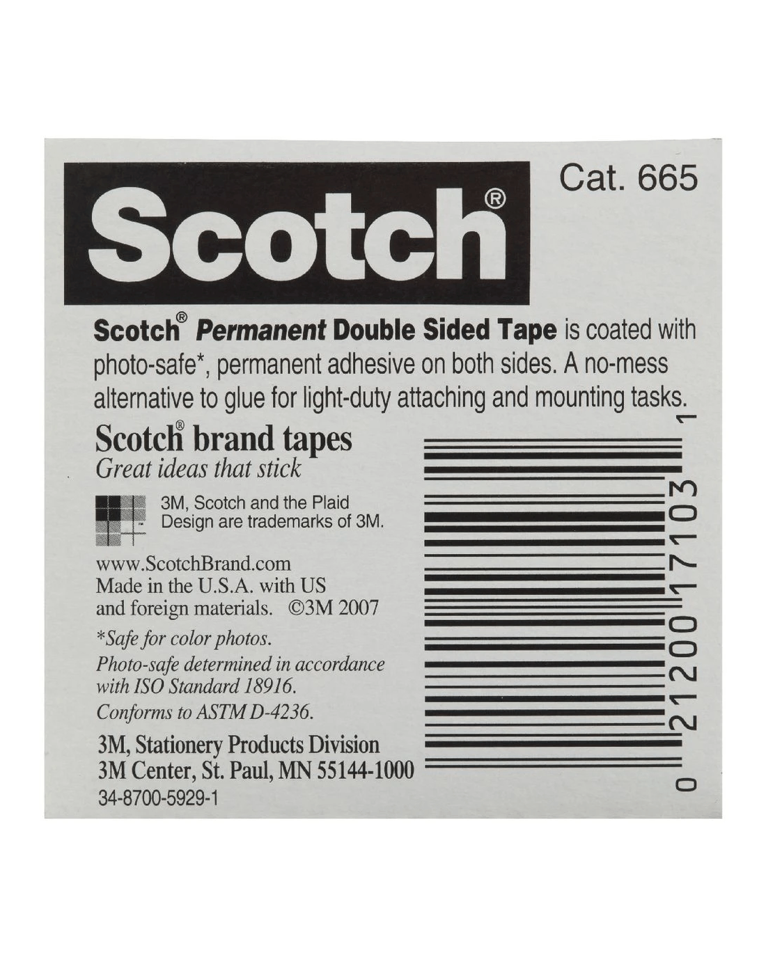 This Scotch Permanent Double-sided Tape is coated with adhesive on both sides making it ideal for scrapbooking and art projects. This tape is permanent so it is long lasting and won't move around over time. The tape won't damage photos and is perfect for gift wrapping, scrapbooking, or mounting posters and notes.