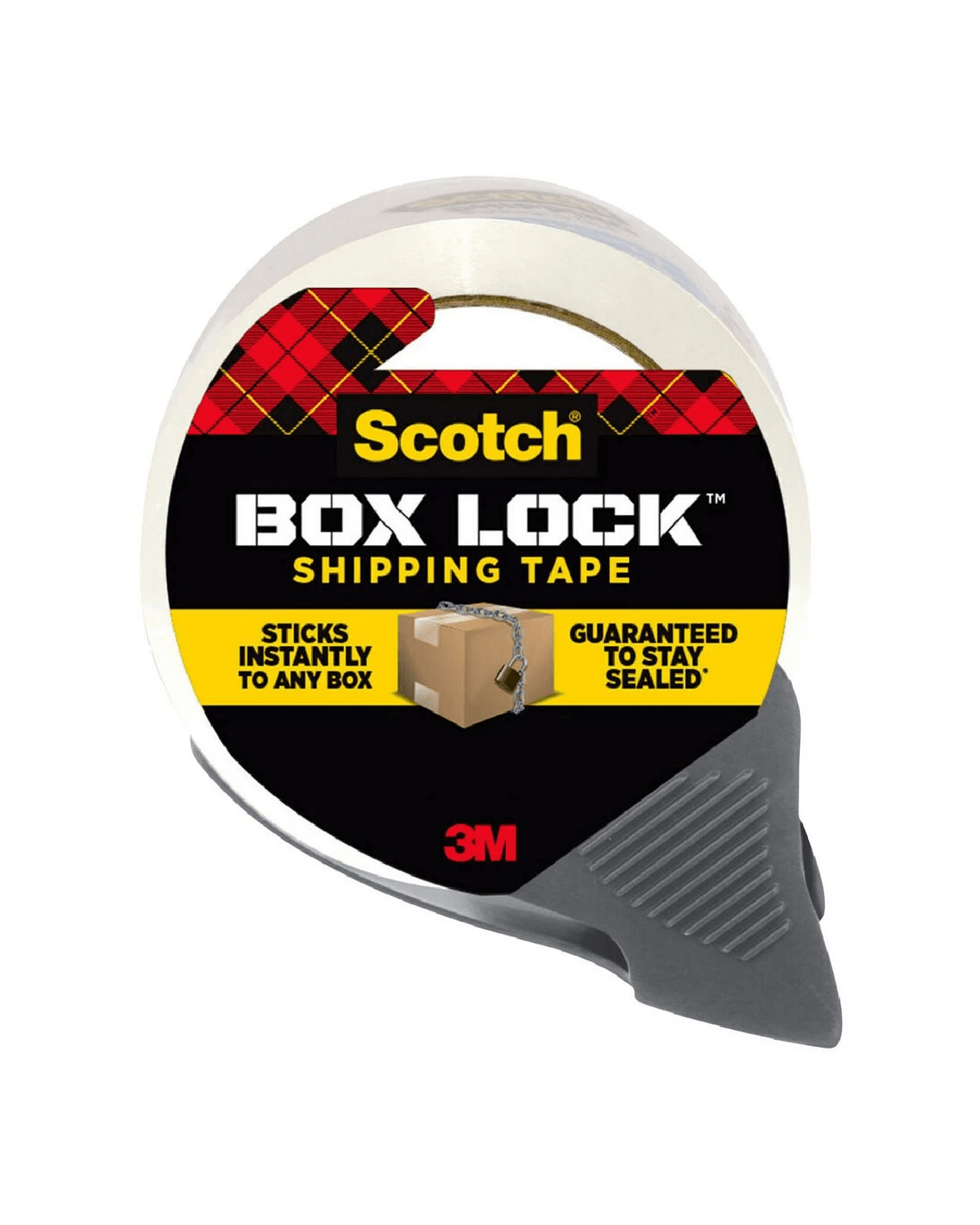 This Scotch Box Lock Packaging Tape has the power of extreme grip to ensure boxes stay securely sealed, even during rough handling. Its new advanced adhesive creates a secure seal over box edges, while its thickness and durability reduces splitting and tearing and makes it easier to find the start of the roll. This tape can be used to seal any type of box, including harder-to-stick-to 100% recycled boxes.
