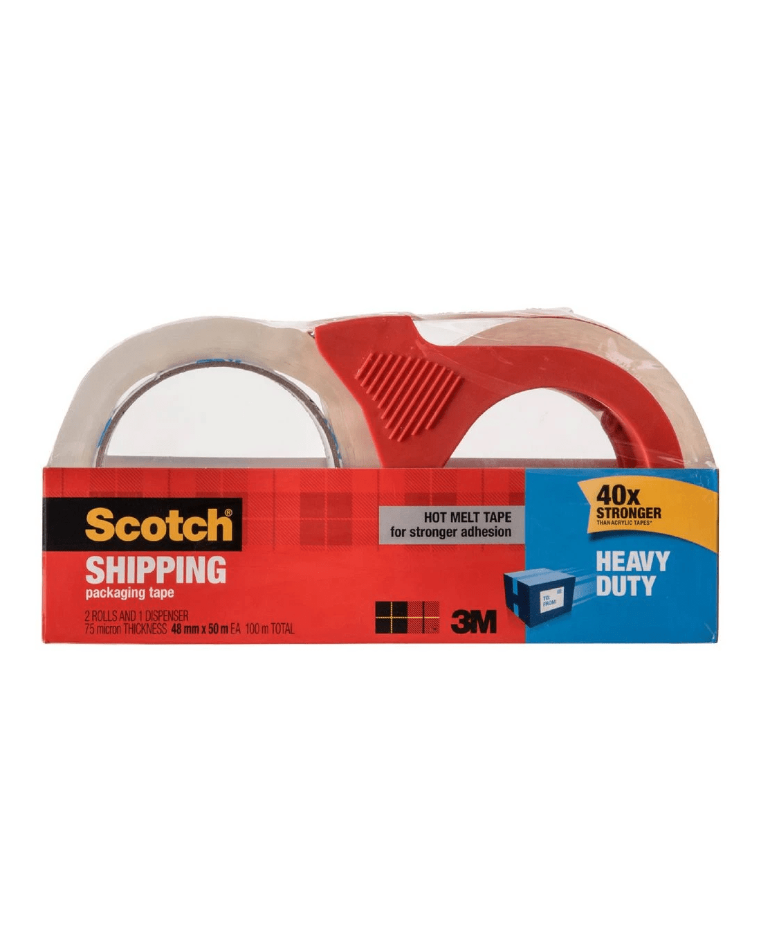 Sold by OfficeworksScotch Heavy Duty Tape and Dispenser 48mm x 50m Clear 2 Pack