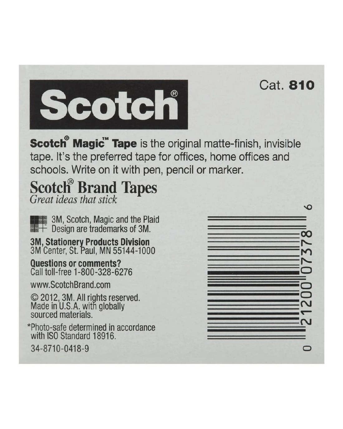 Scotch Magic 810 Invisible Tape has a matte finish and can be written on which makes it ideal for labelling. This tape appears frosted on the roll so that you can see it easily but is clear once applied. The tape is photo safe, meaning it can be used with photographs and archiving tasks.