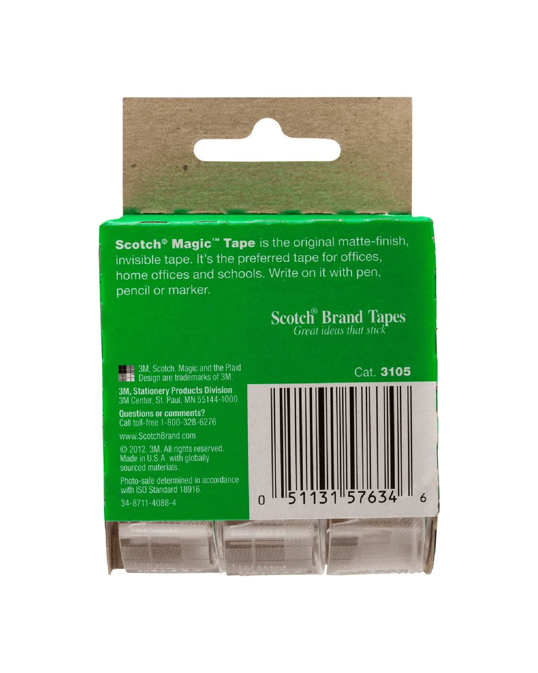Scotch Magic Tape has a matte finish and can be written on which makes it ideal for labelling. This tape appears frosted on the roll so that you can see it easily but is clear once applied. The tape is acid free so you don't have to worry about it causing discolouration to your photos or art projects over time.