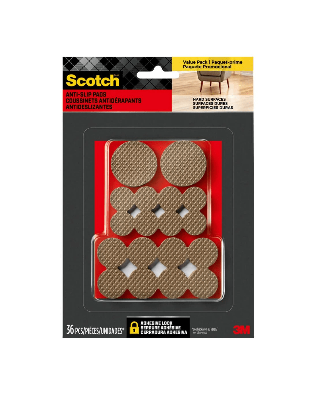 Scotch Soft Gripping Pads help keep furniture in place, especially larger items. They come in pre cut self-adhesive circles for ease of use and will also protect the surface from damage.
