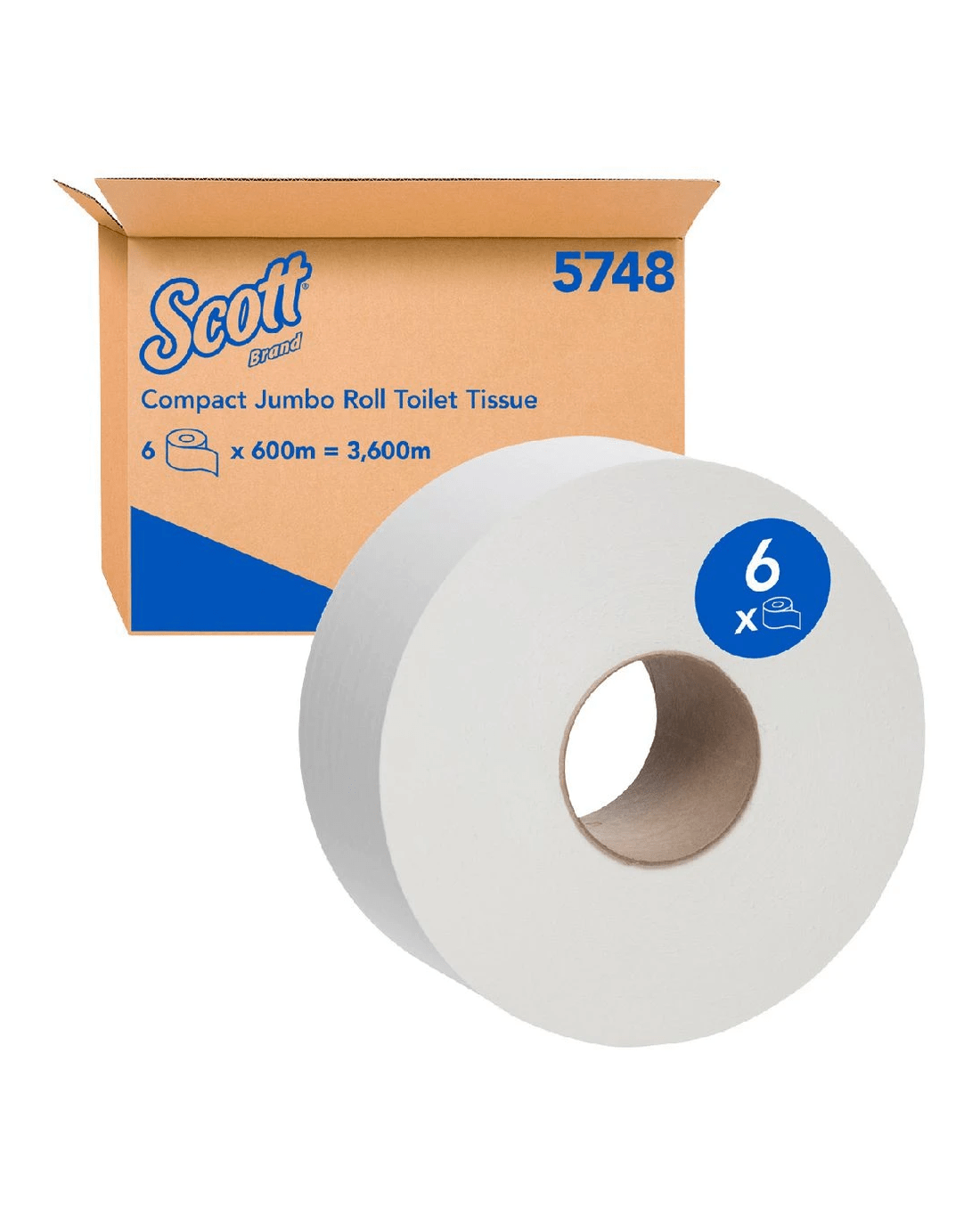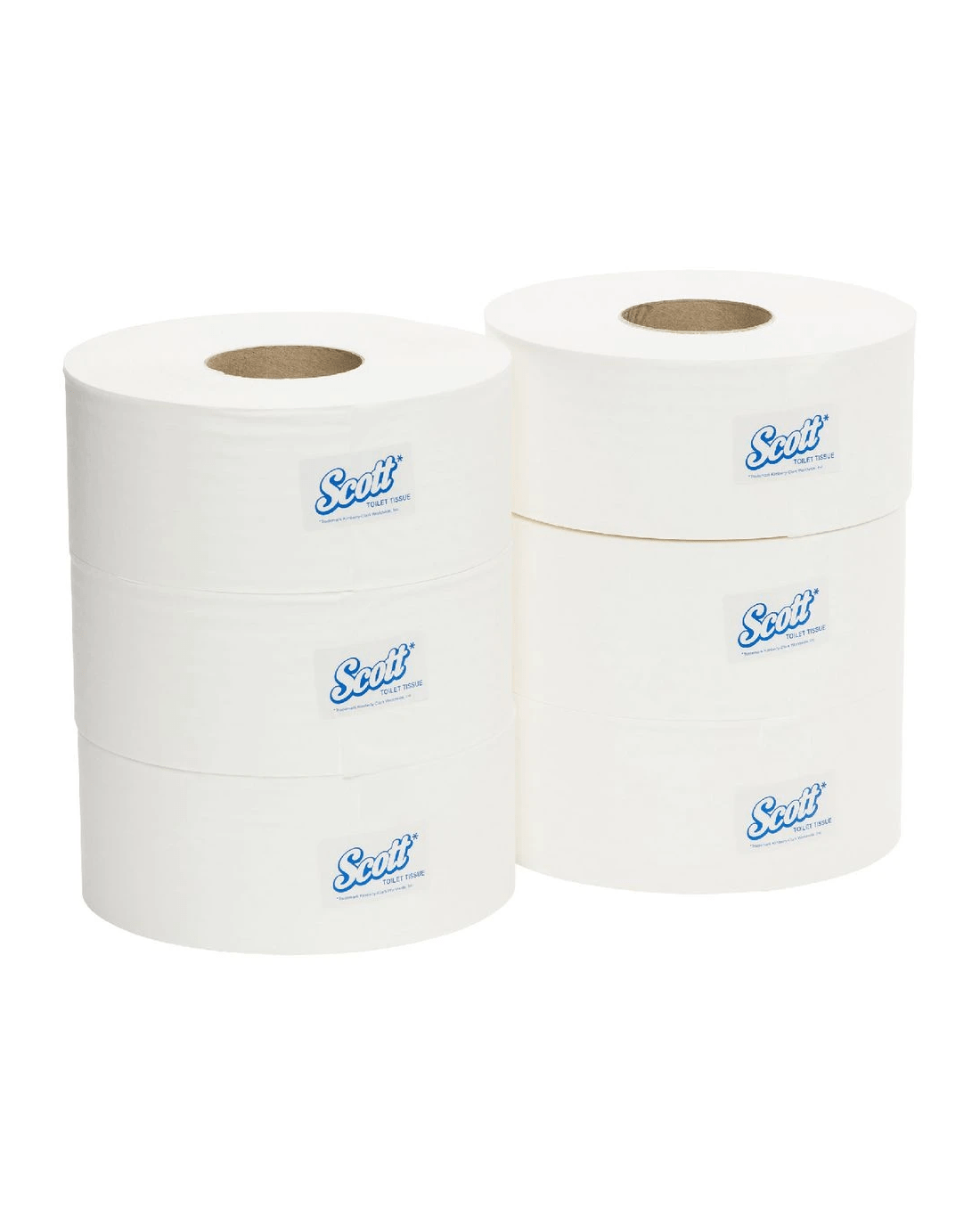 These Scott Compact Jumbo Toilet Tissue Rolls come in a handy pack of 6 so you can refill several dispensers at once or simply stock up. The large size of the paper and long length of the roll means you don't have to refill your dispensers as often, saving time.