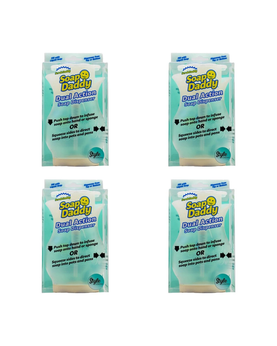 Sold by KG SuperStoreScrub Daddy Soap Daddy Dual Action Soap Dispenser Easy Use 4 Pack - Blue